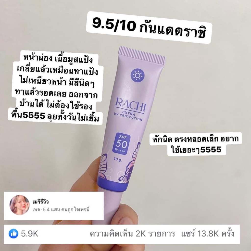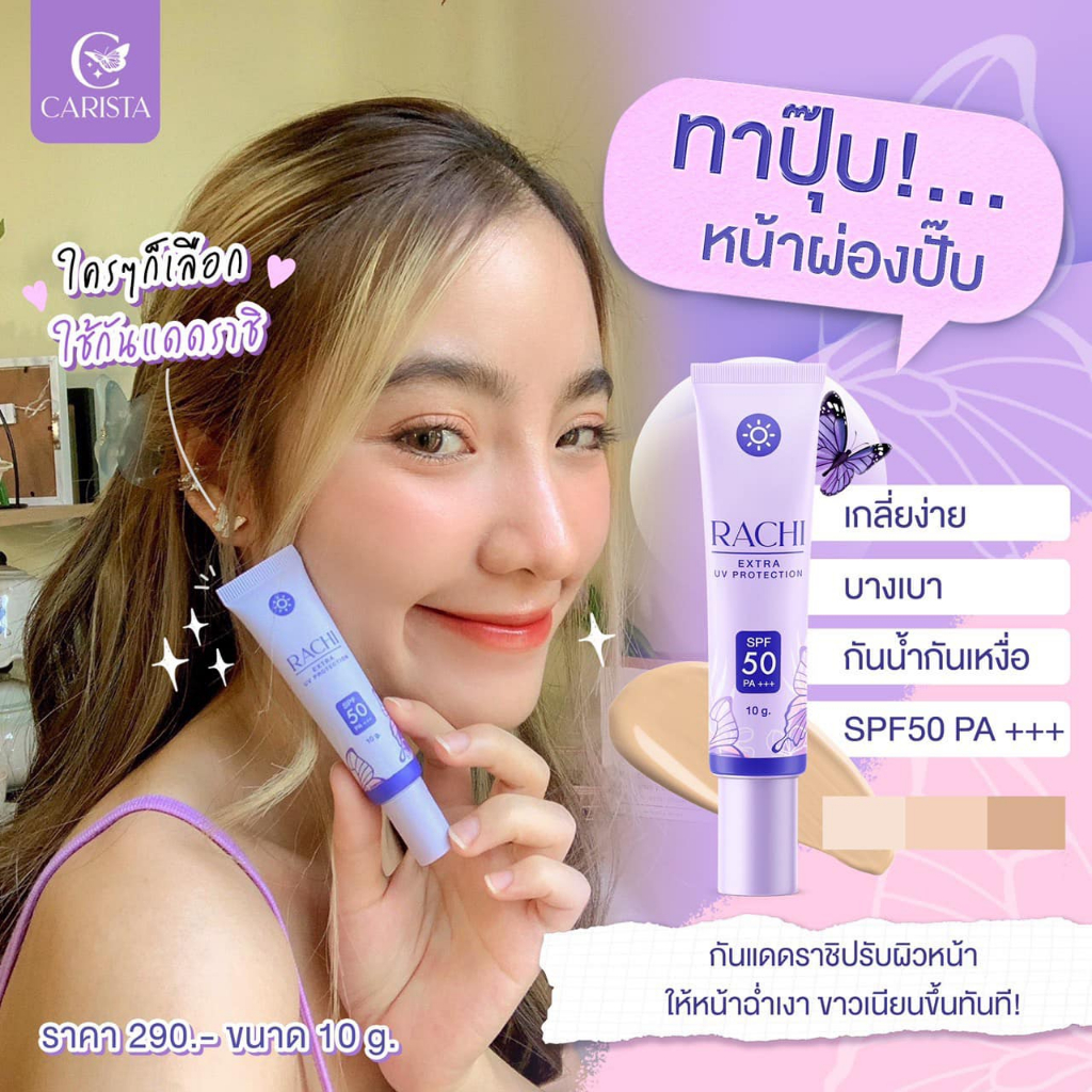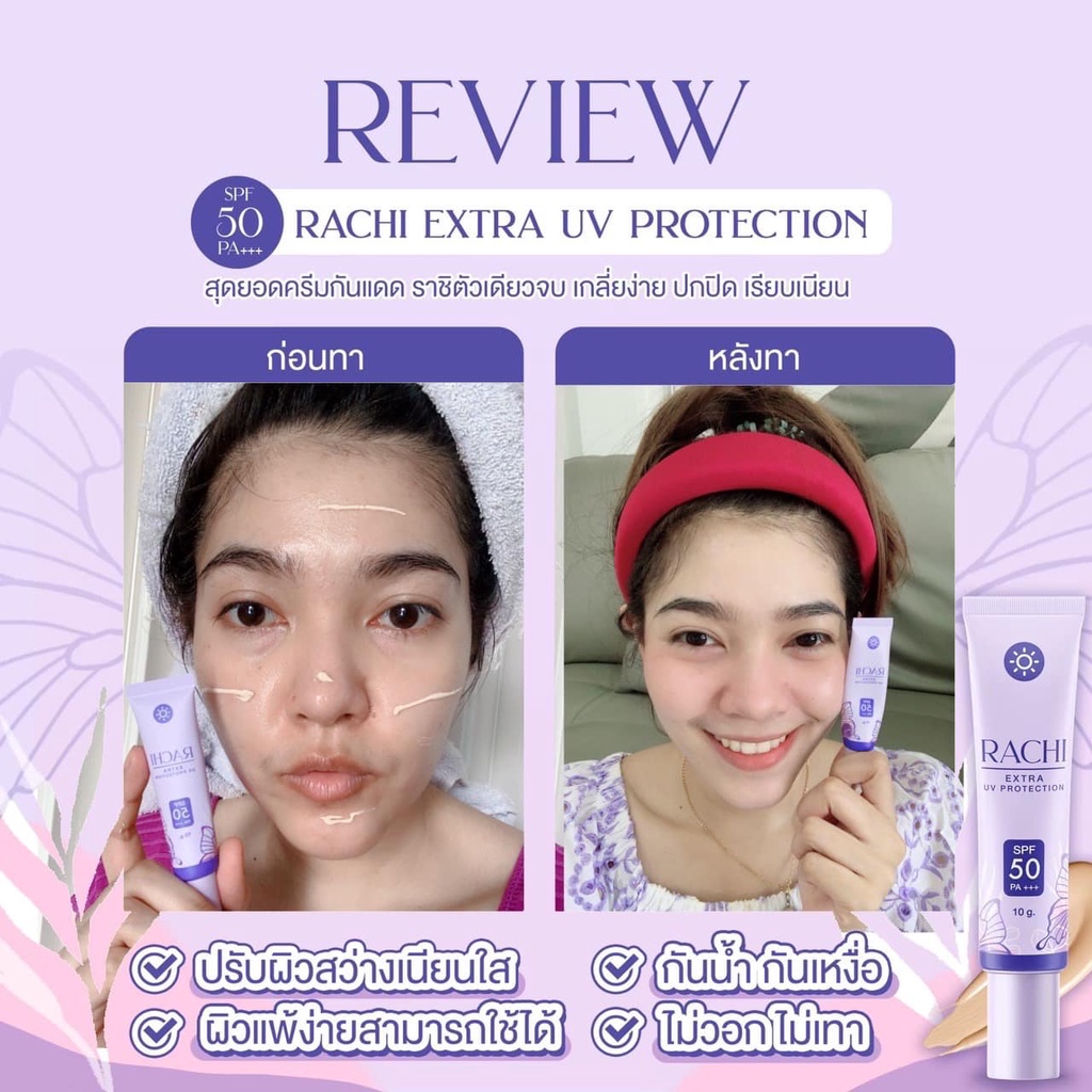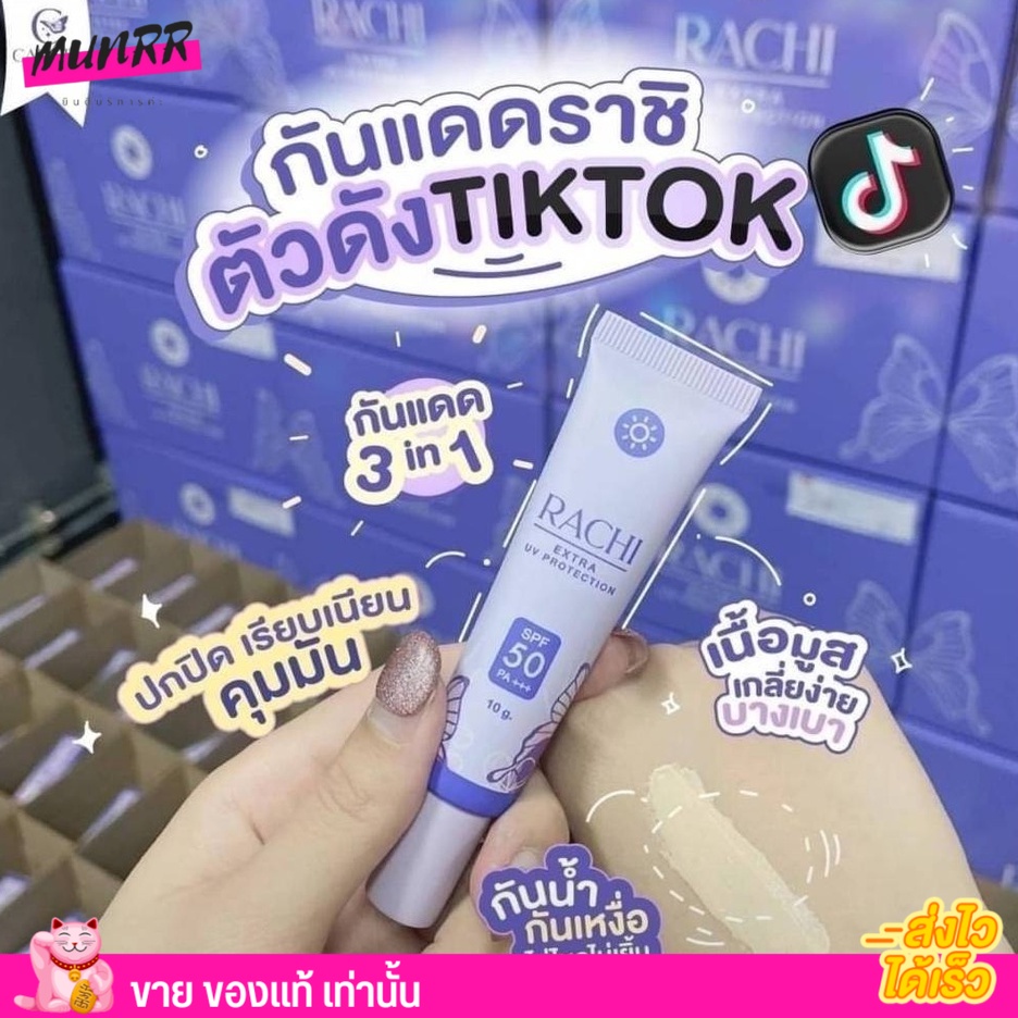 ✨Lotใหม่ เพิ่มปริมาณ20%✨ กันแดด ราชิ Rachi SPF 50PA+++ กันแดดไม่ติดแมส rashi ลาชิ หลอดม่วง [12g.]