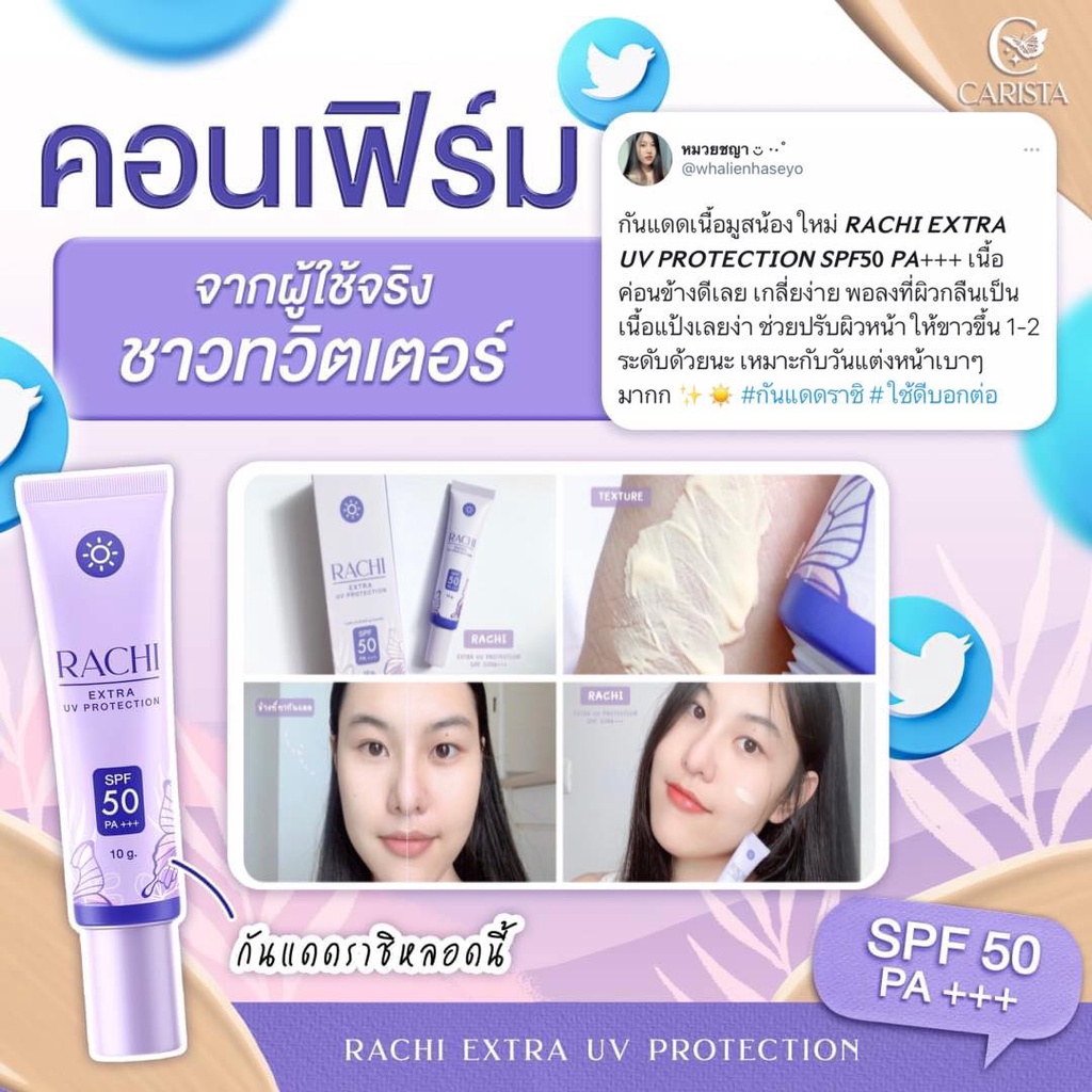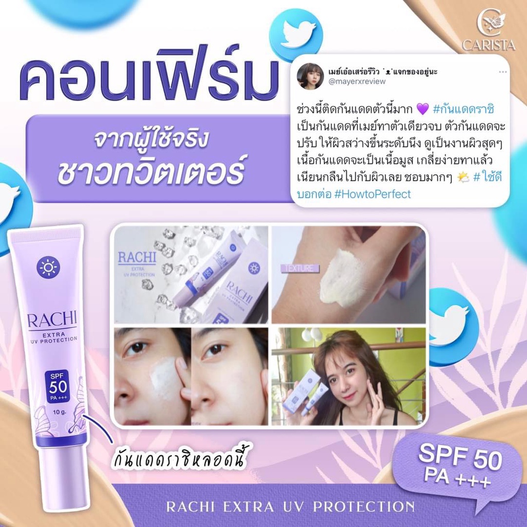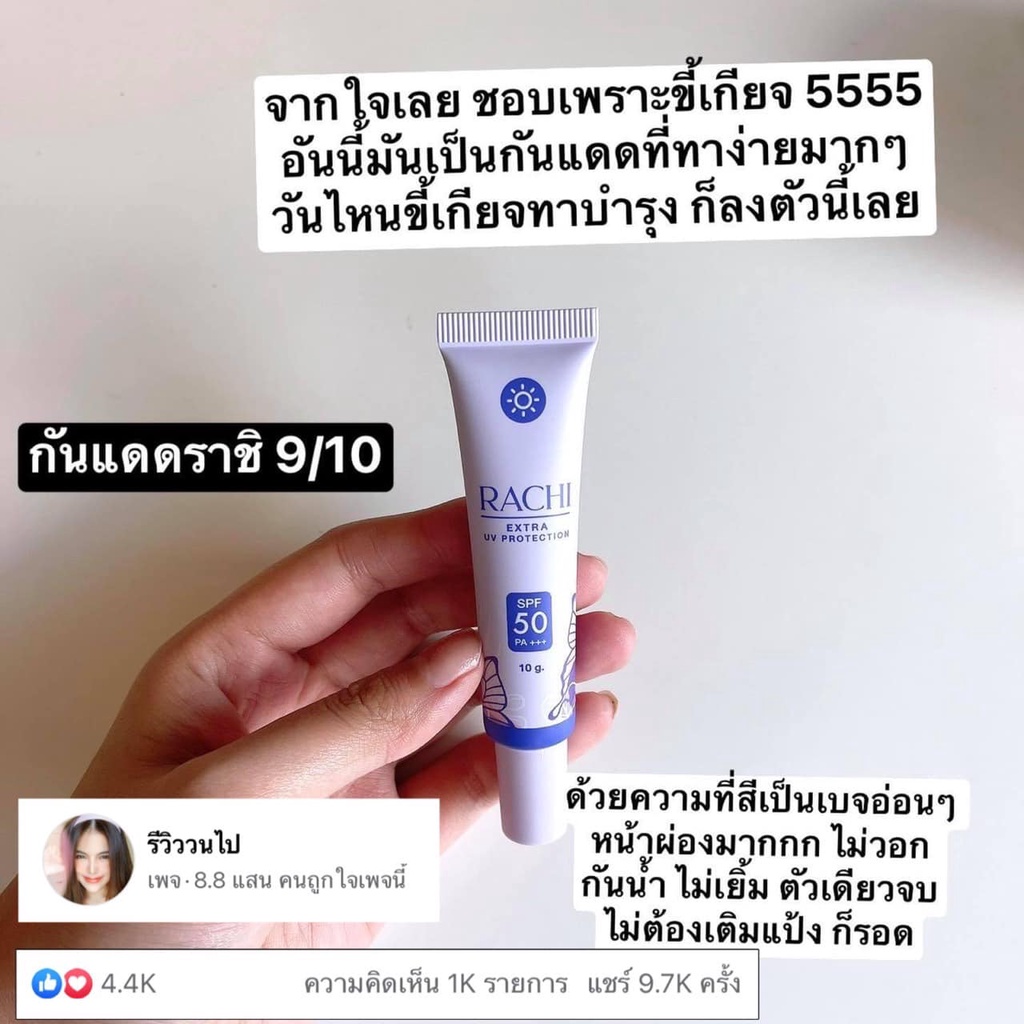 ✨Lotใหม่ เพิ่มปริมาณ20%✨ กันแดด ราชิ Rachi SPF 50PA+++ กันแดดไม่ติดแมส rashi ลาชิ หลอดม่วง [12g.]
