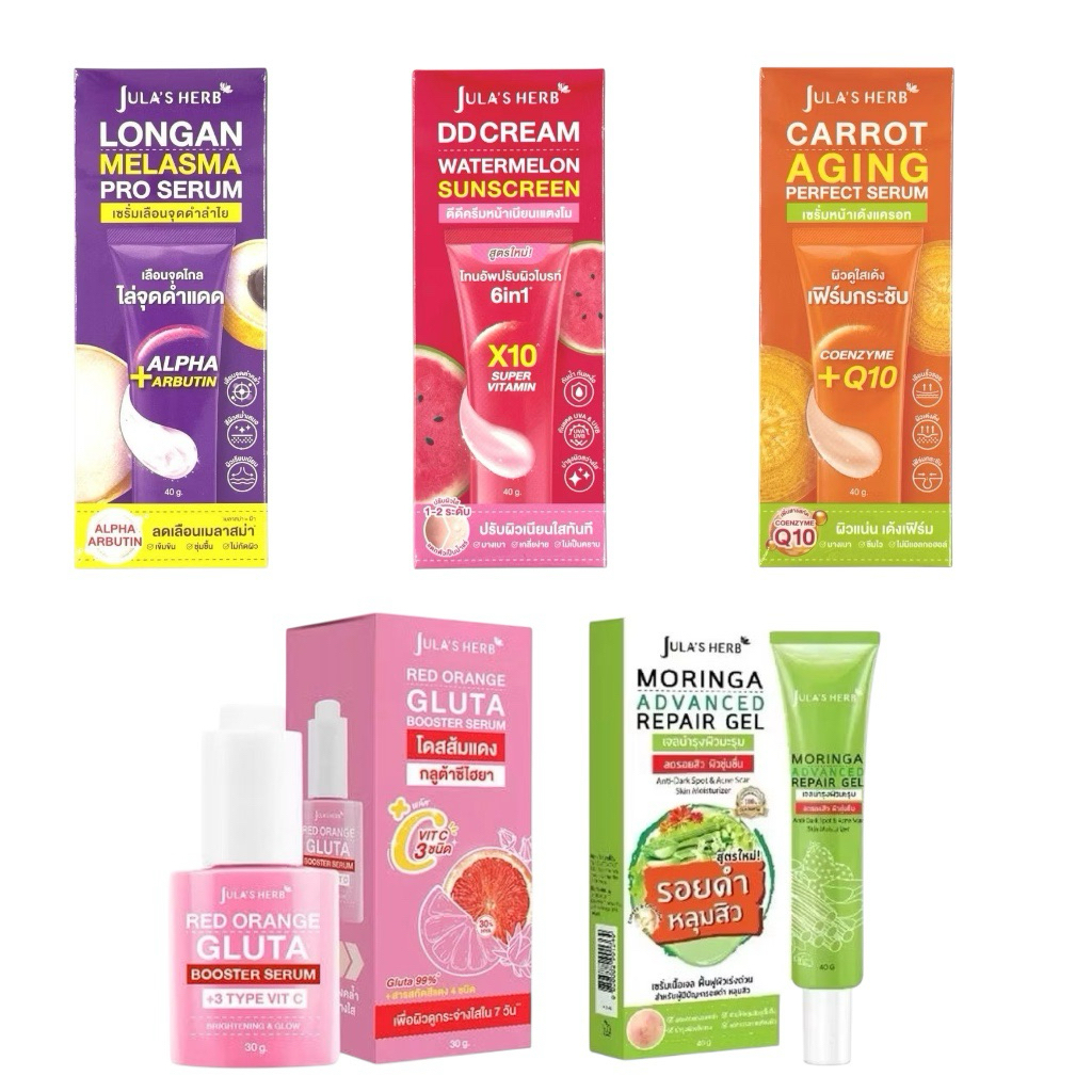 Jula's Herb จุฬาเฮิร์บ บำรุงผิว หลอด ครีมแตงโม เซรั่มลำไย มะม่วง แครอท ขิงดำ เจล ดาวเรือง มะรุม ขนาด 40 กรัม