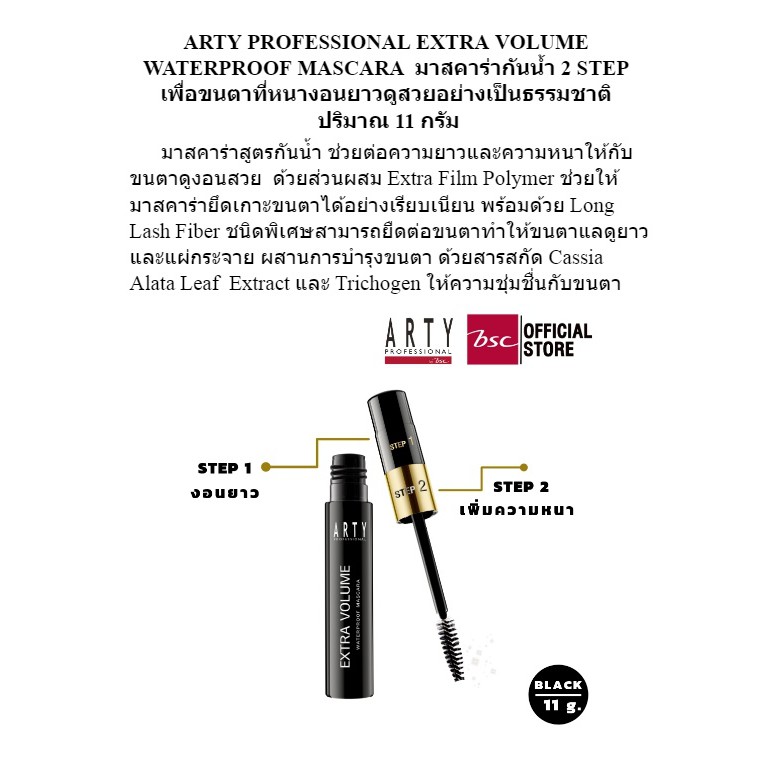 ARTY PROFESSIONAL EXTRA VOLUME WATERPROOF MASCARA มาสคาร่ากันน้ำ 2 STEP ปริมาณ 11 กรัม