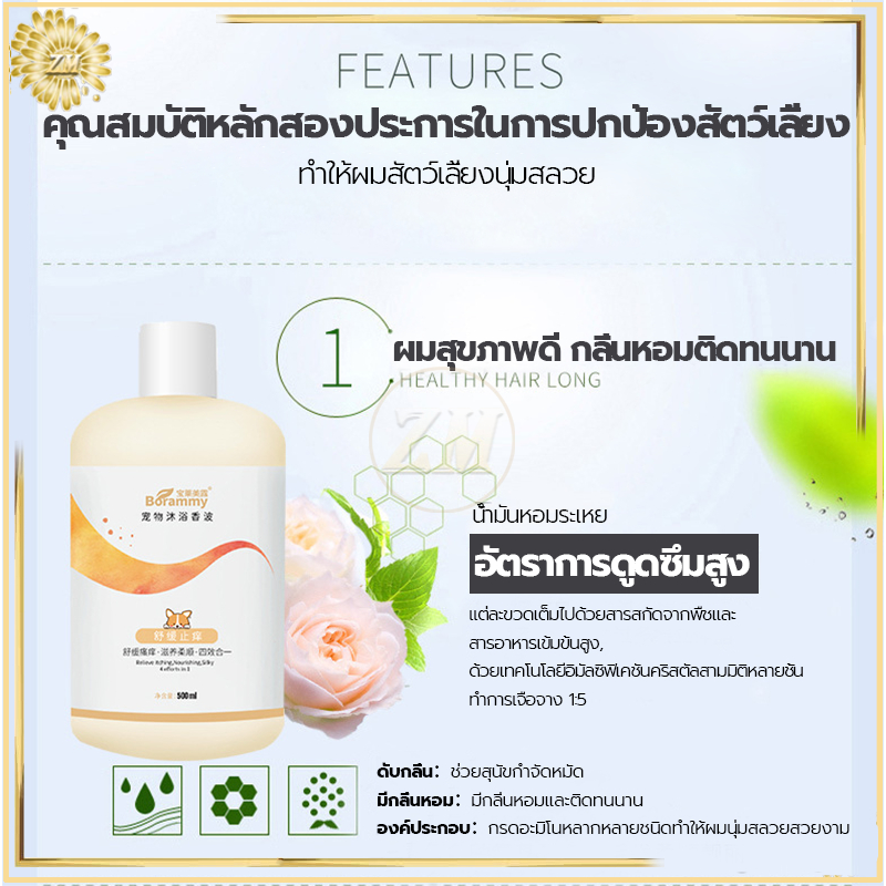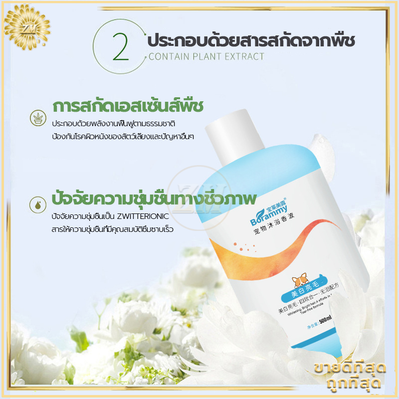 แชมพูสุนัข แชมพูแมว 500 มล. สูตรอ่อนโยนจากธรรมชาติเพื่อปกป้องผิวหนังของสัตว์เลี้ยง ใช้ได้ทั้งแมวและสุนัข