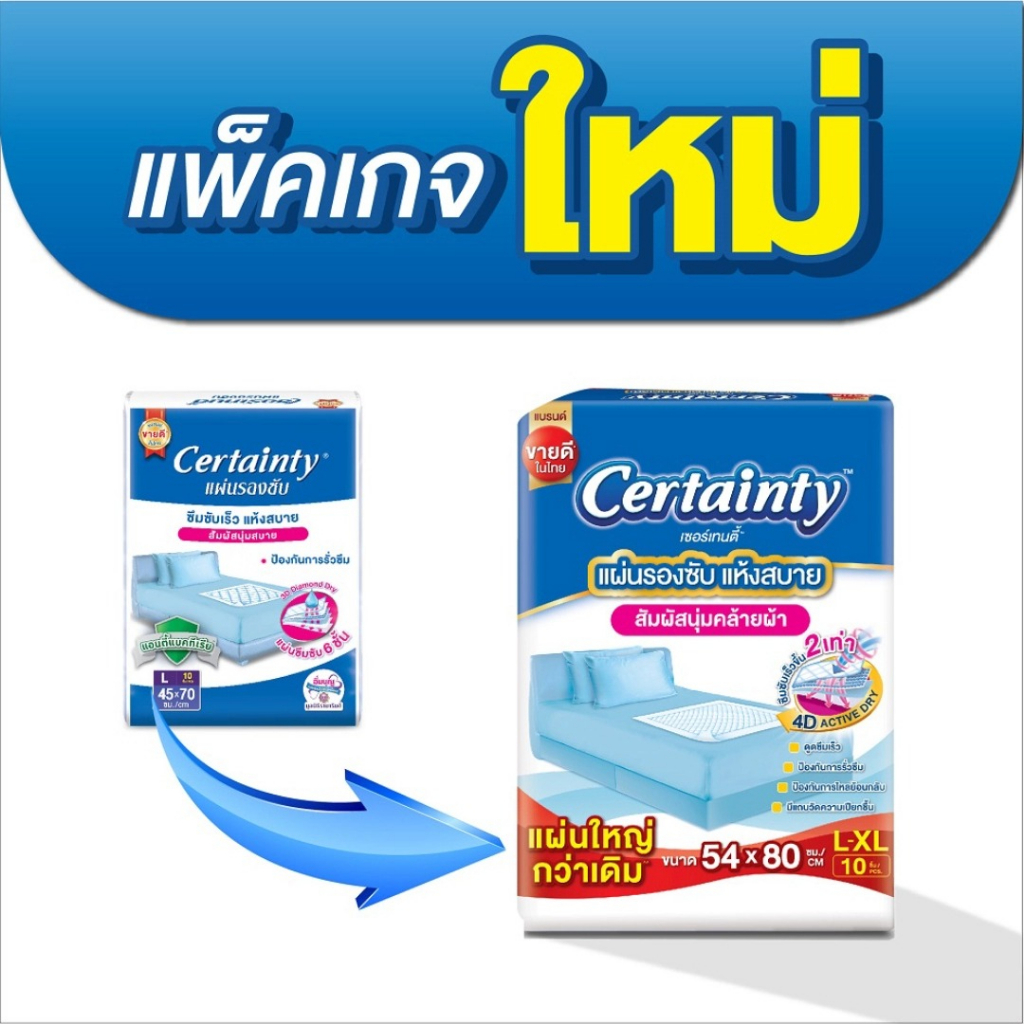 ส่งเร็ว !! ( แพ็ค 3 ห่อ ) Certainty เซอร์เทนตี้ แผ่นรองซับ ขนาด 54x80 ซม. (10ชิ้น/ห่อ) ขนาด L-XL (ถูกที่สุด)