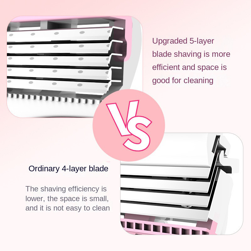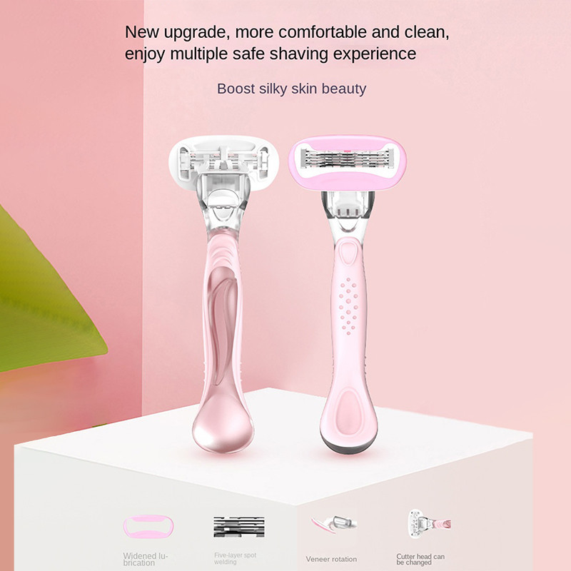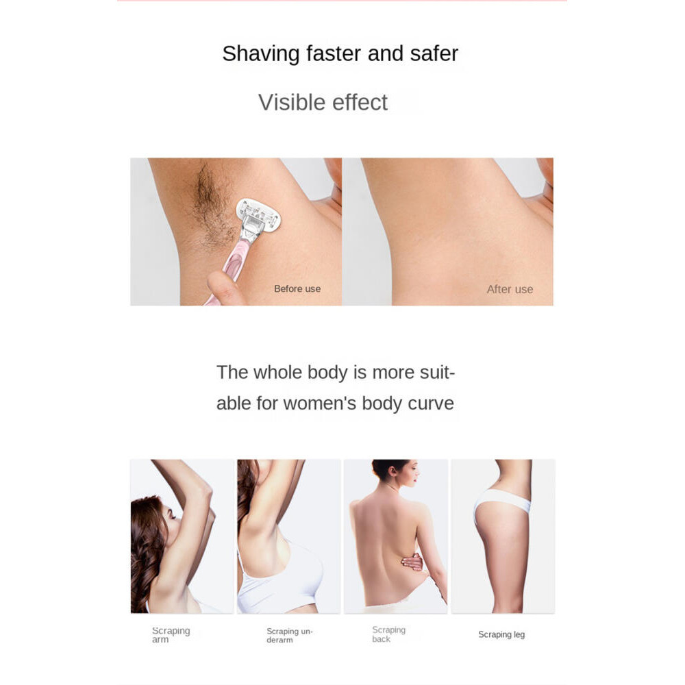 Yunchi 2 ชิ้นกําจัดขนสุภาพสตรีโกนหนวดมีด 5 ชั้นจุดเชื่อมเปลี่ยนหัวมีด
