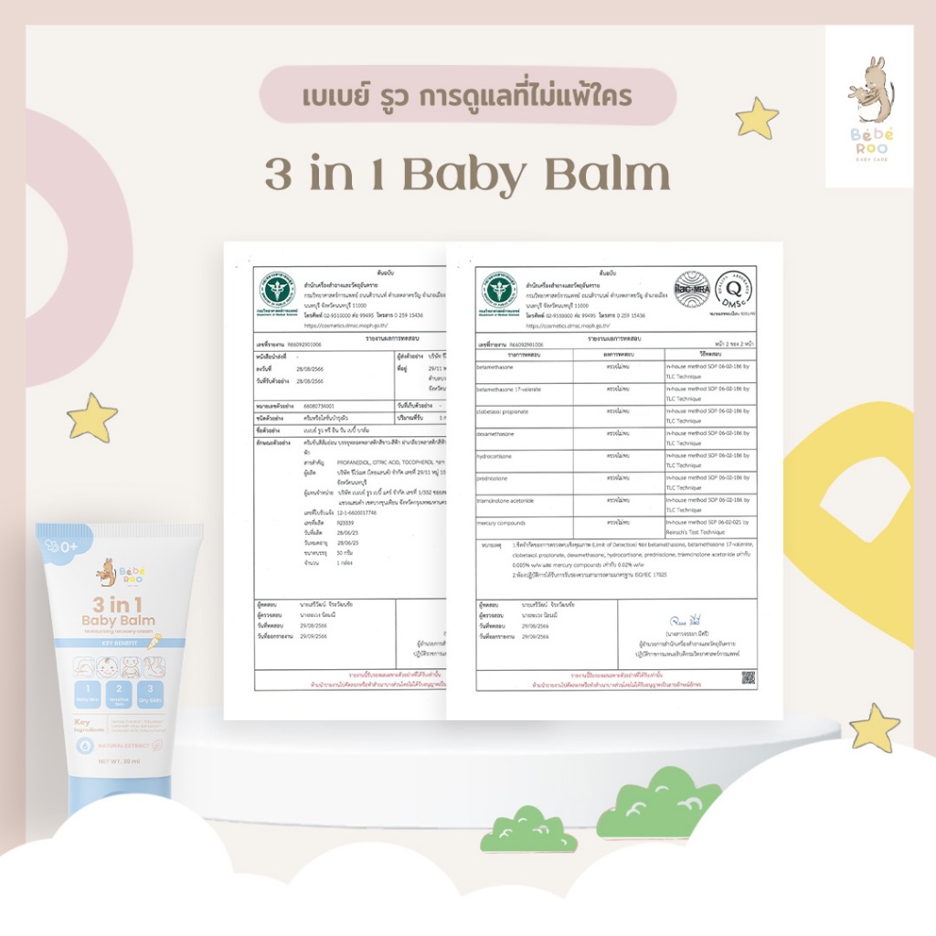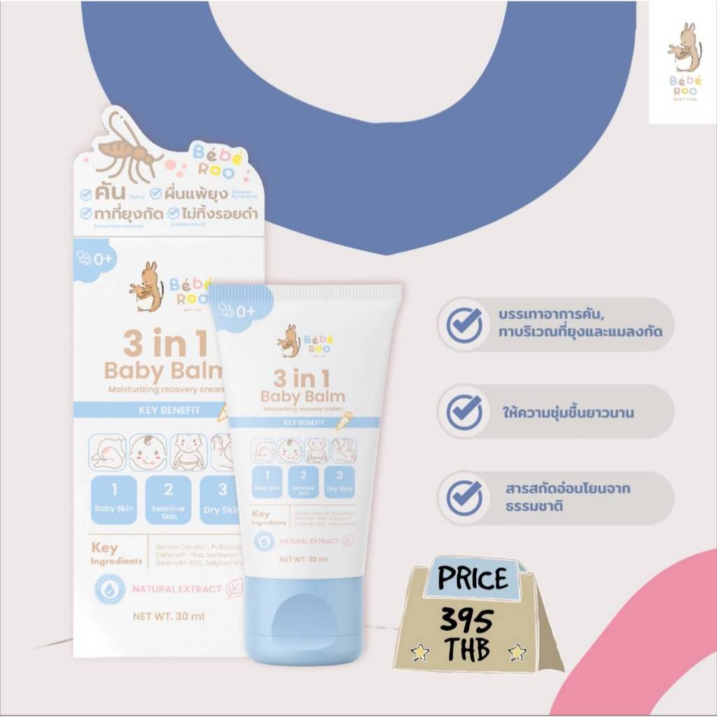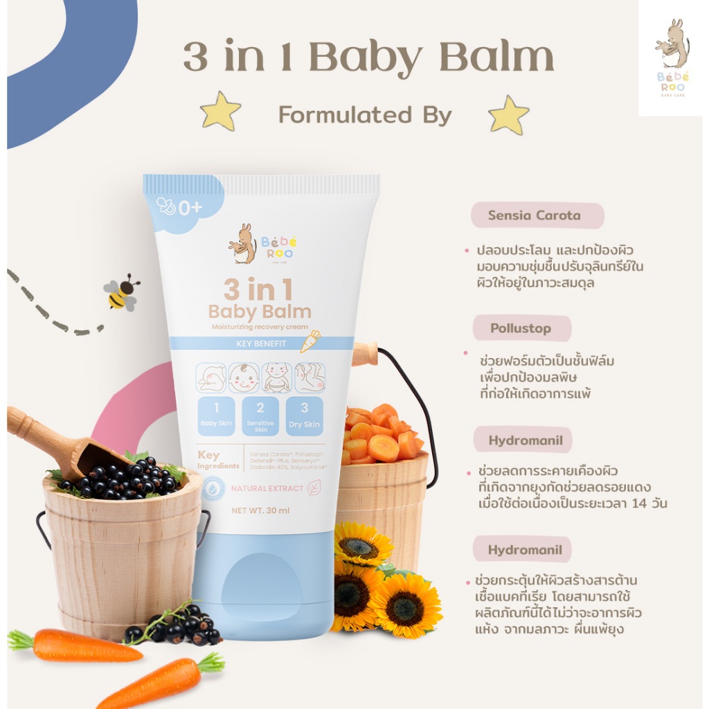 [โปร 1 แถม 1] Bebe Roo บาล์ม ครีม บำรุงผิวเด็ก 3 in 1 Beberoo Baby Balm & Cream 30g. //BR-78982