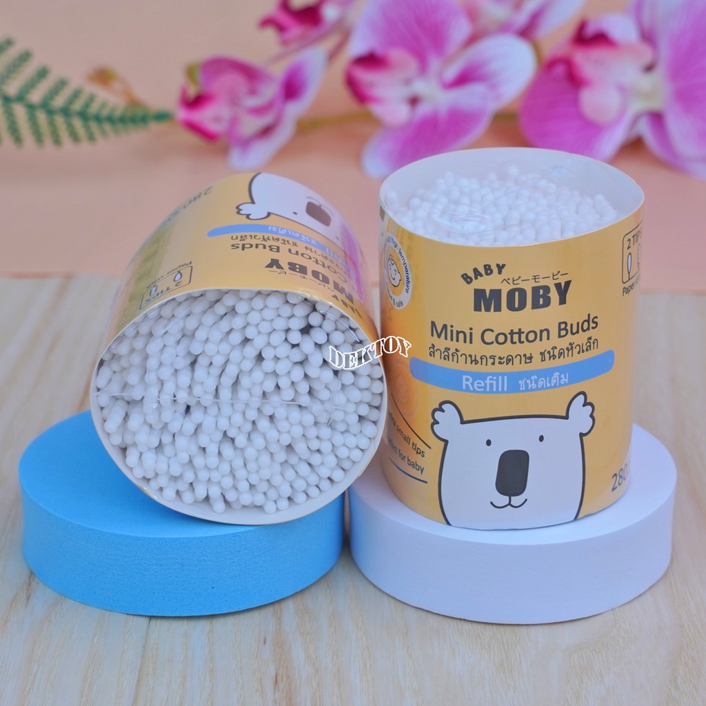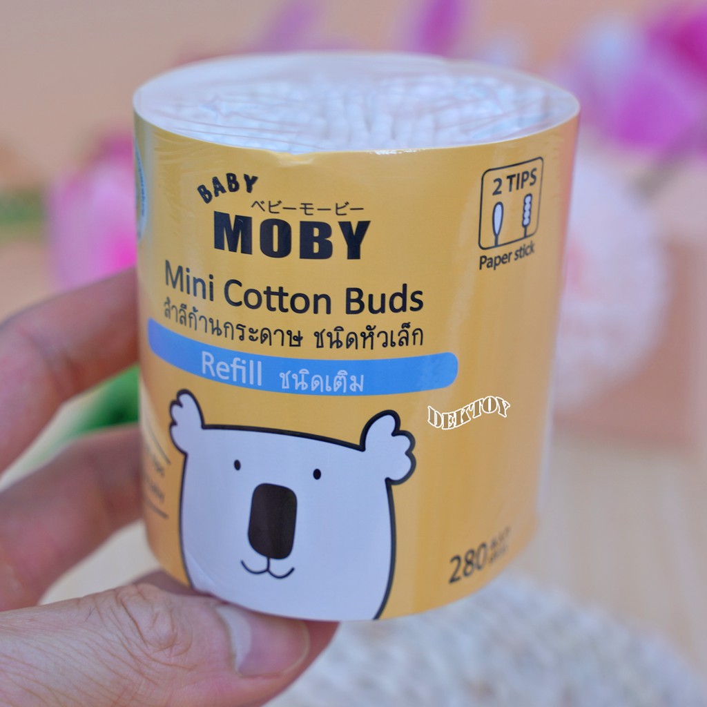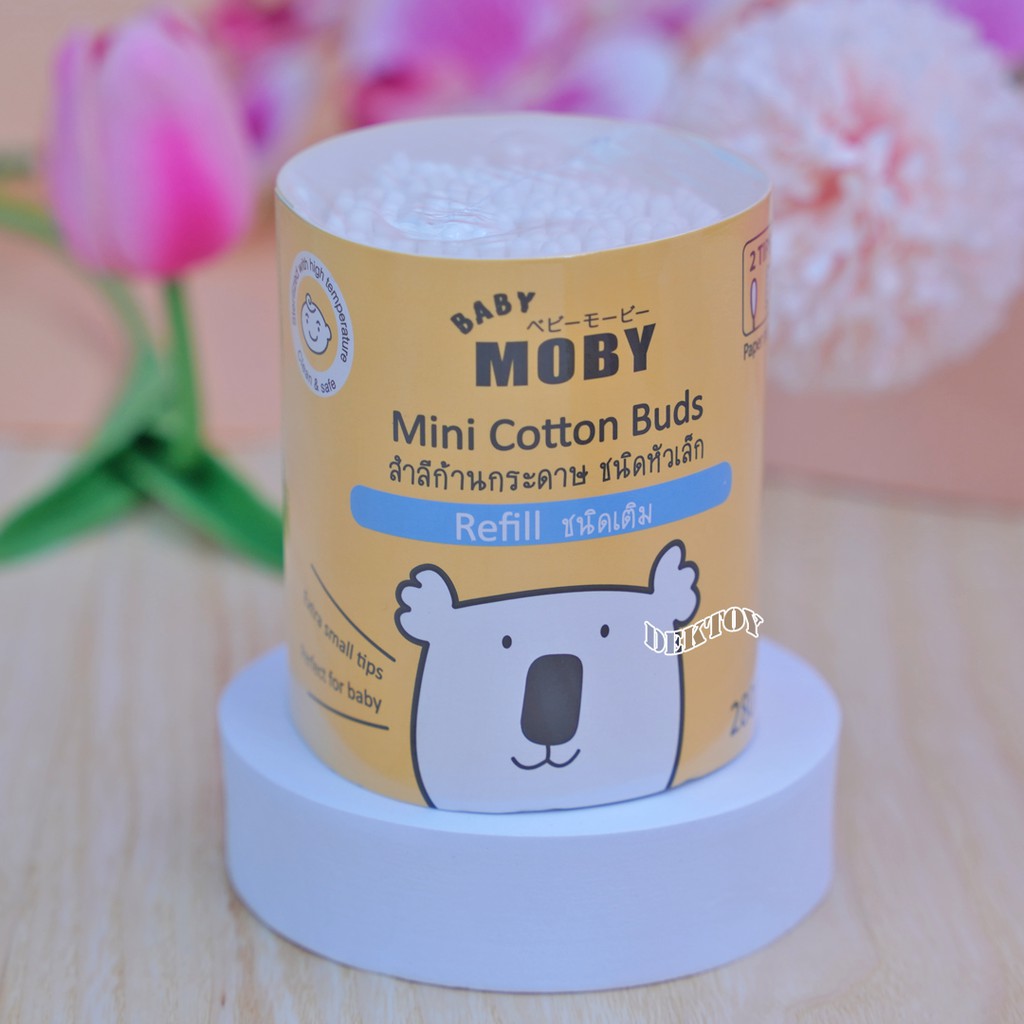 Baby moby เบบี้โมบี้ สำลีก้านจิ๋ว คอตตอนบัตก้านกระดาษหัวเล็ก ชนิดเติม 280 ก้าน