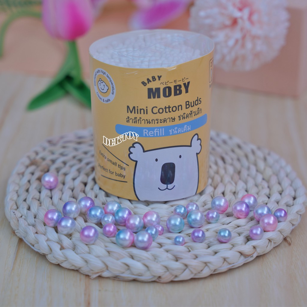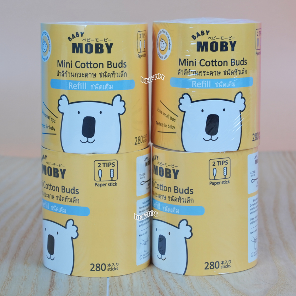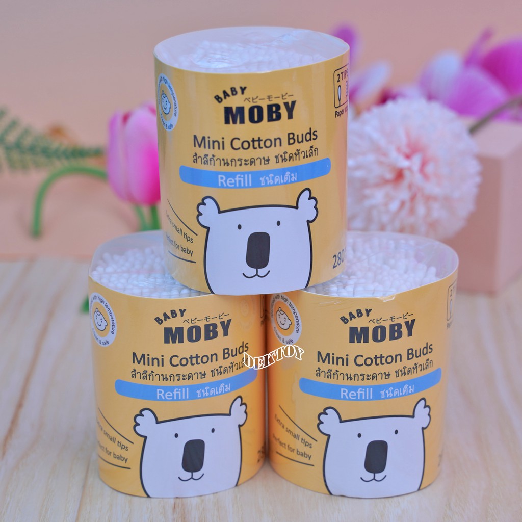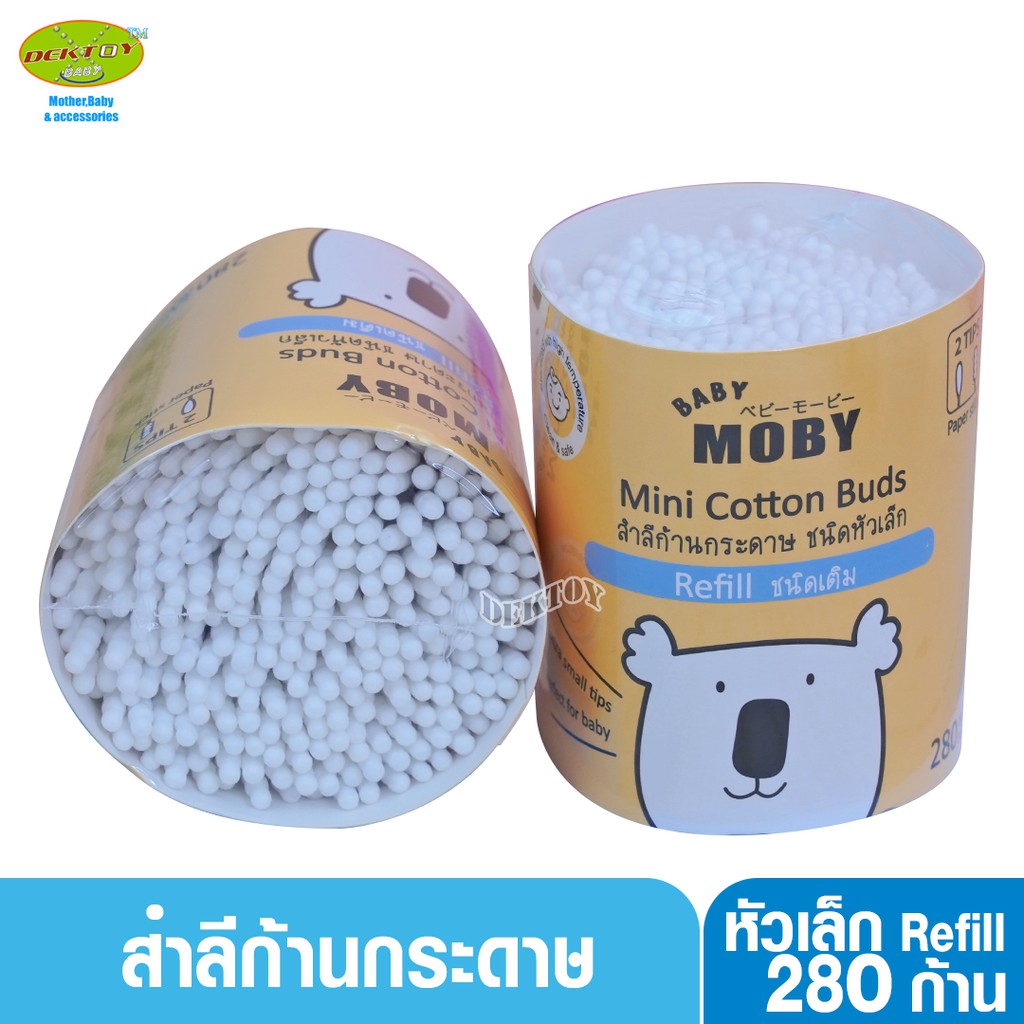 Baby moby เบบี้โมบี้ สำลีก้านจิ๋ว คอตตอนบัตก้านกระดาษหัวเล็ก ชนิดเติม 280 ก้าน