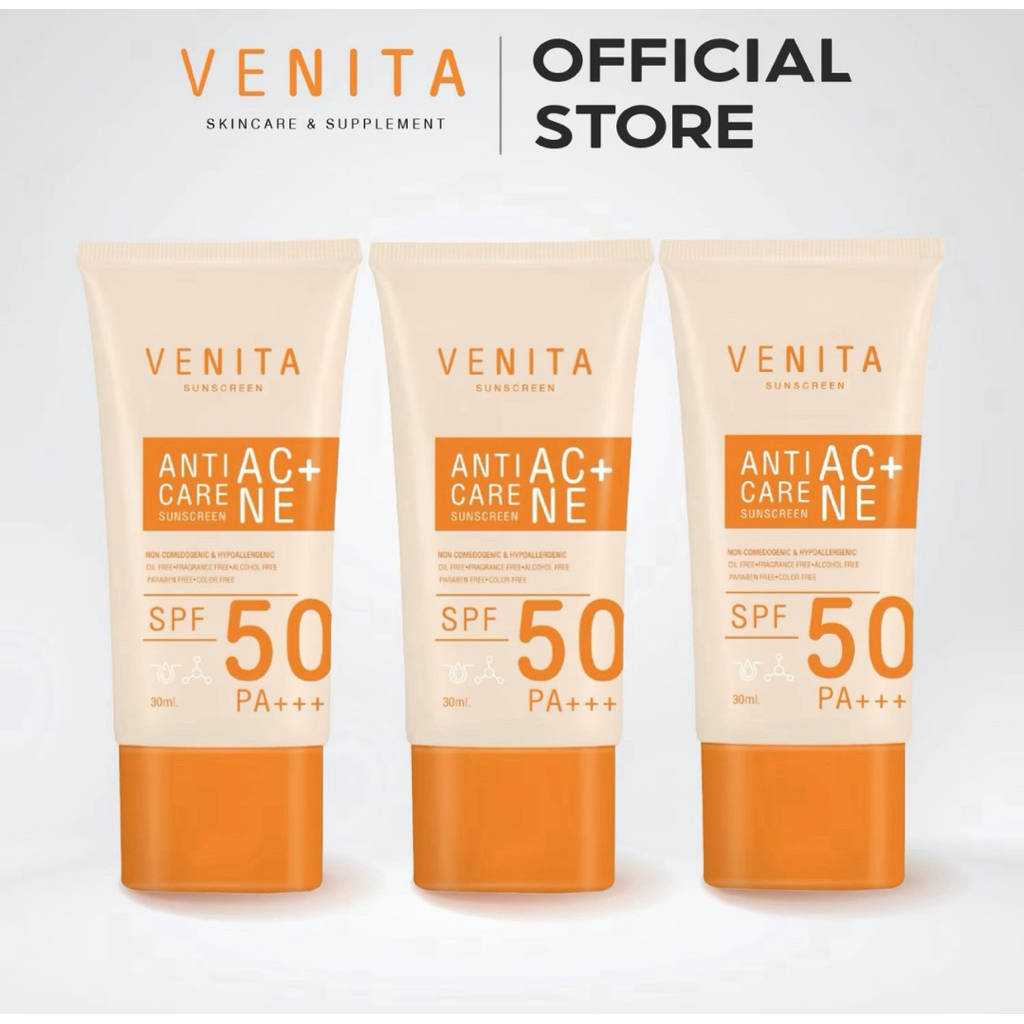 [ 3 หลอด ] Venita Anti-Acne Care Sunscreen SPF50|PA+++plus30 ml เวนิต้า