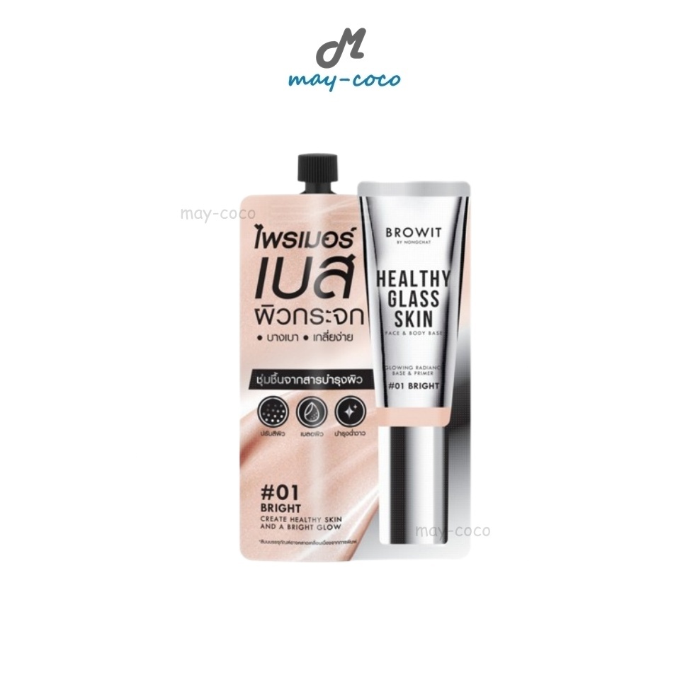 ถูก/แท้/มีไลฟ์ (ซอง) เบส น้องฉัตร Browit Healthy Glass Skin Face&Body Base เมคอัพเบส ผิวกระจก ผิวโกลว์ ฉ่ำวาว บางเบา