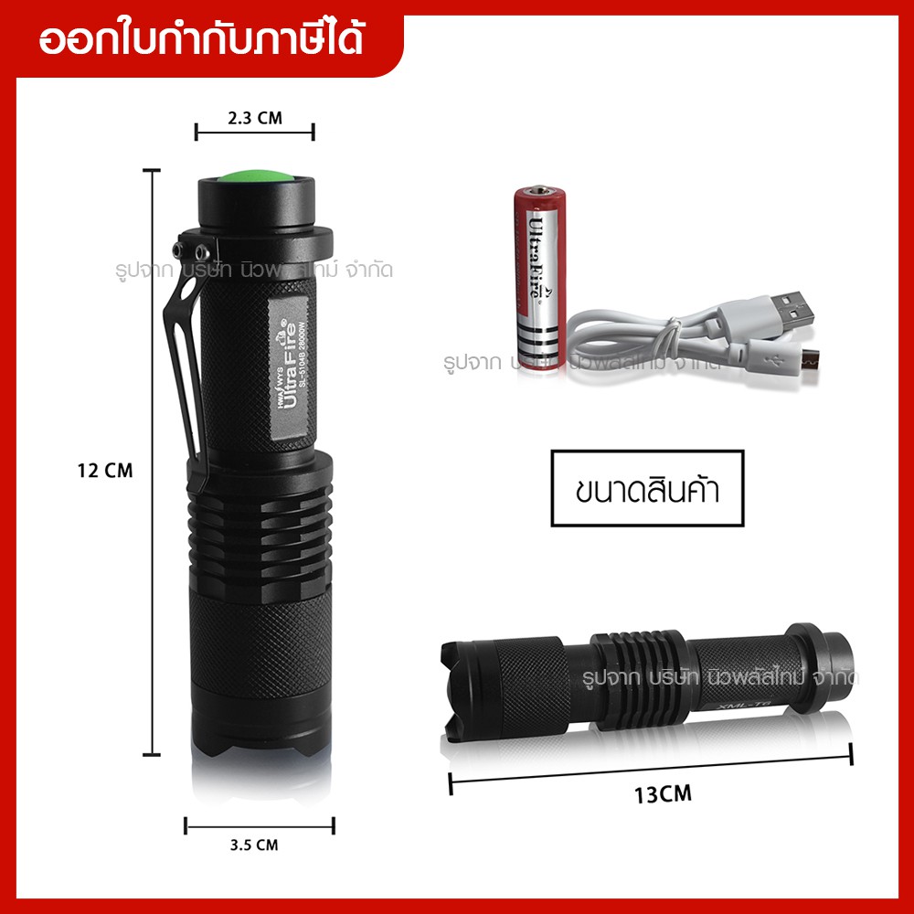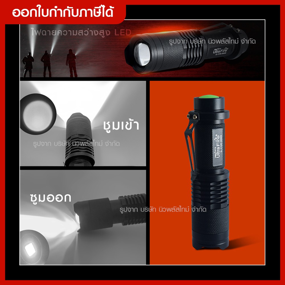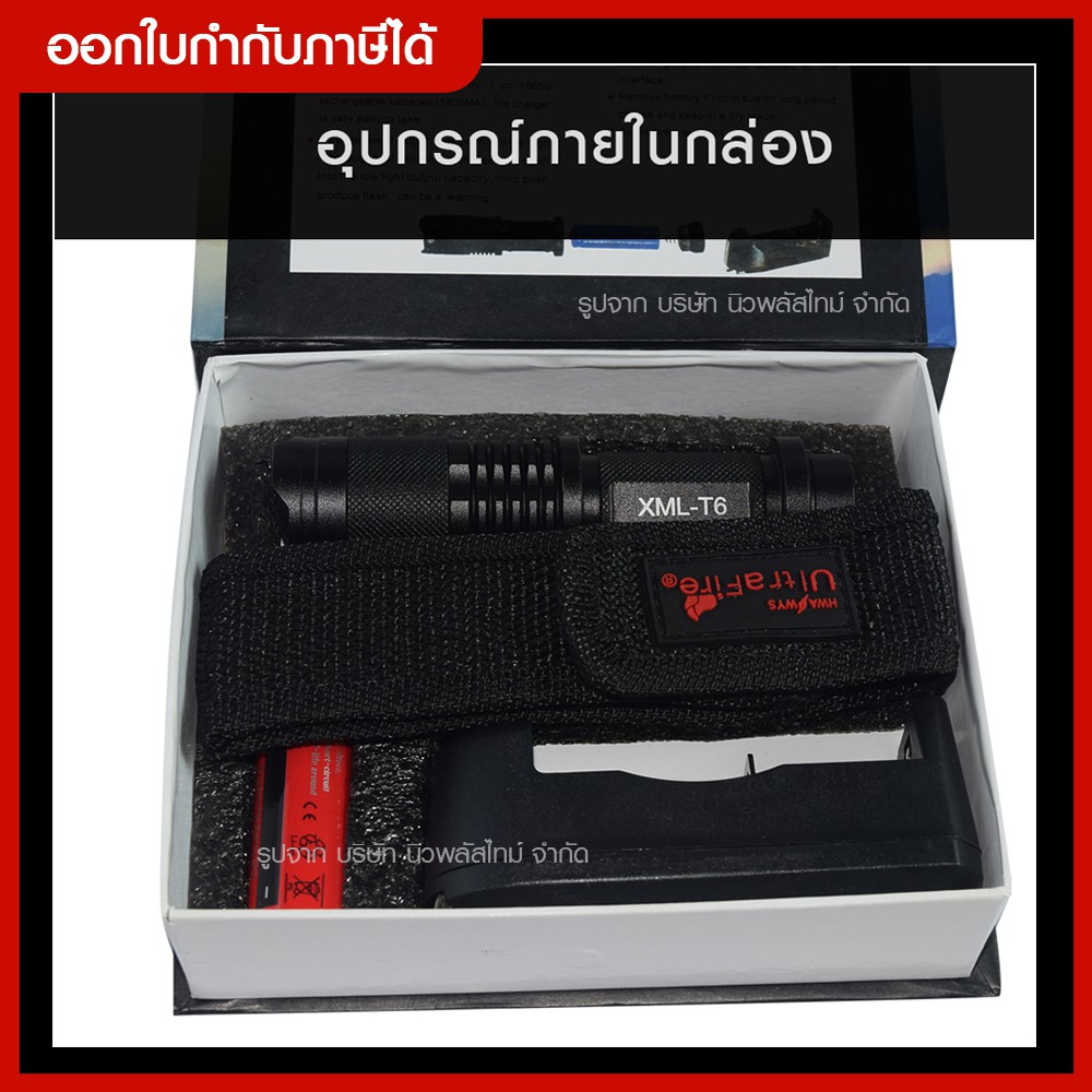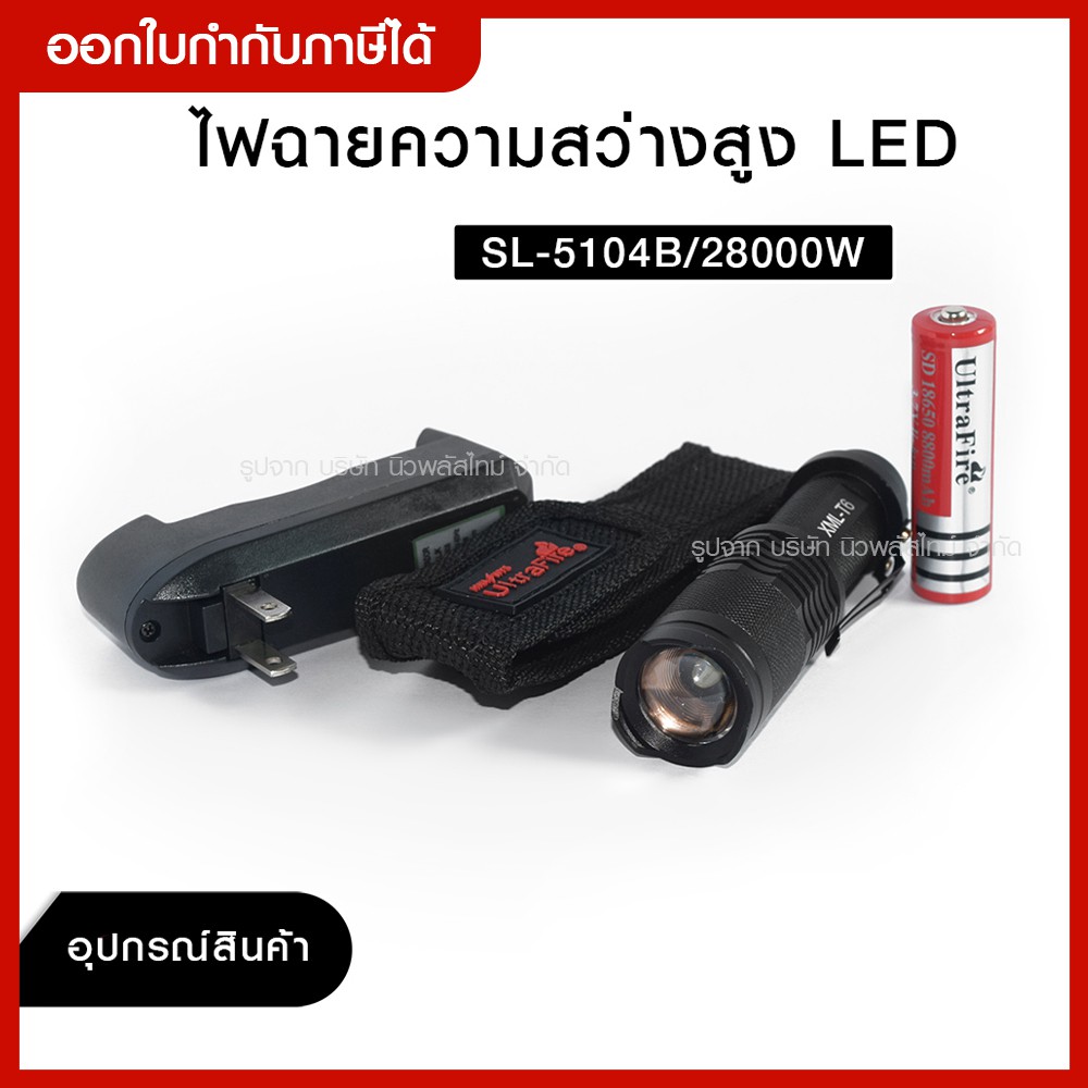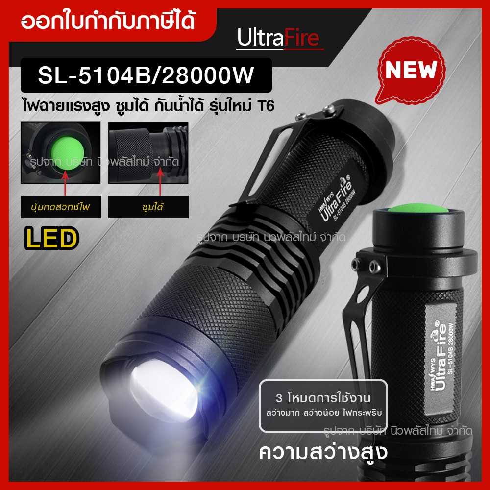 ส่งด่วน ไฟฉายทหาร ไฟฉายตำรวจ ไฟฉายเดินป่า ไฟฉายแรงสูง Ultrafire รุ่น XML-T6 JX-5104B ไฟซูม 28000W (ของแท้)