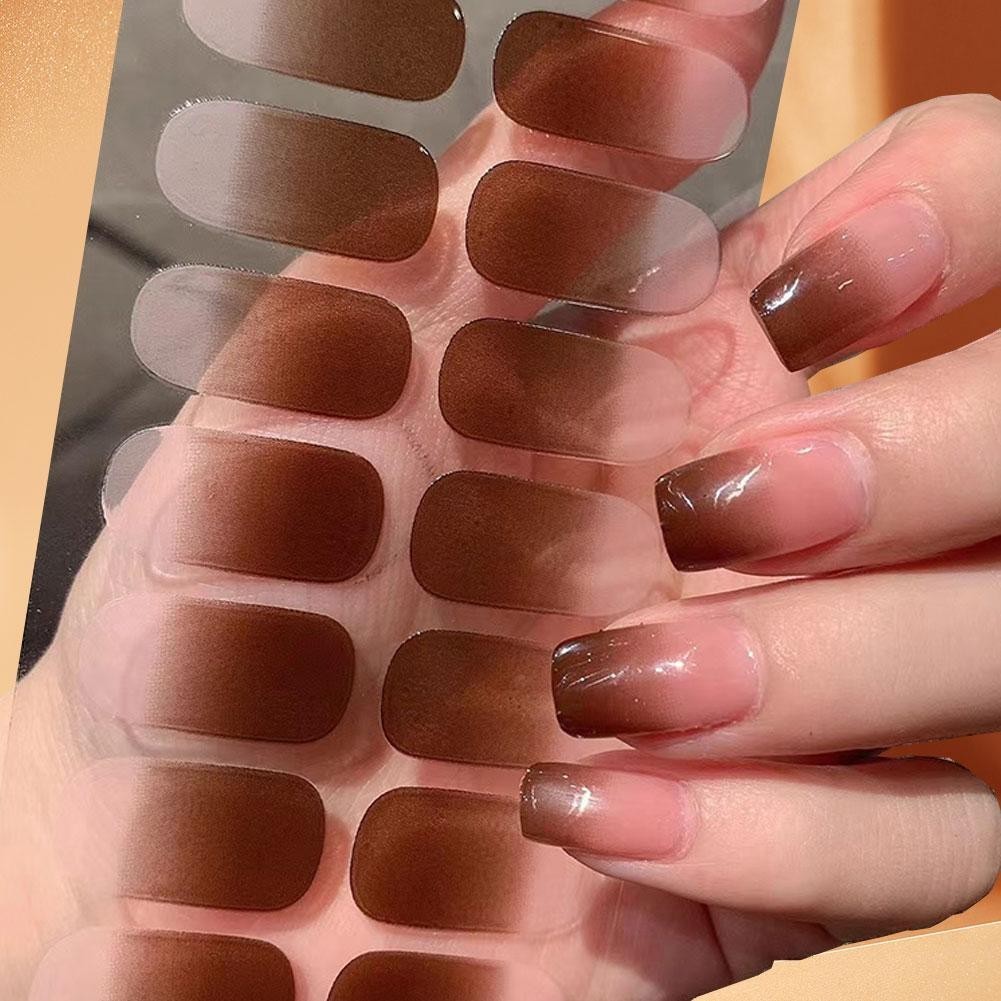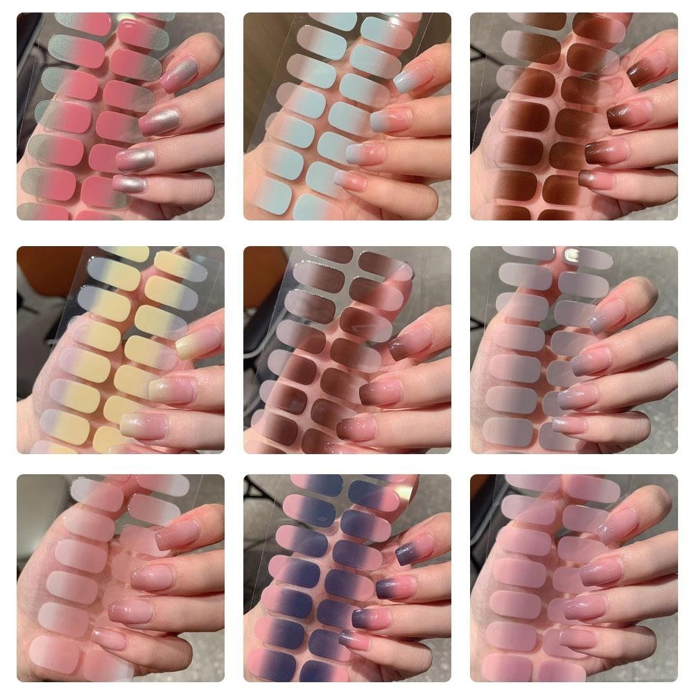 เล็บเจลแถบแพทช์สีทึบไล่โทนสีเลื่อนกาวกันน้ําติดทนนานเต็ม ฉ4