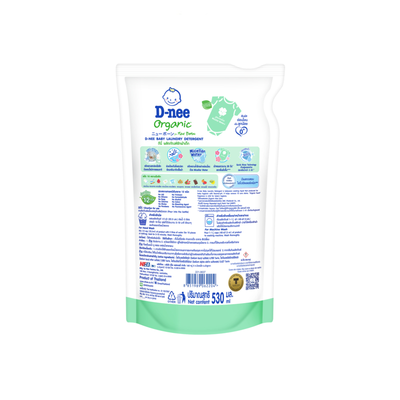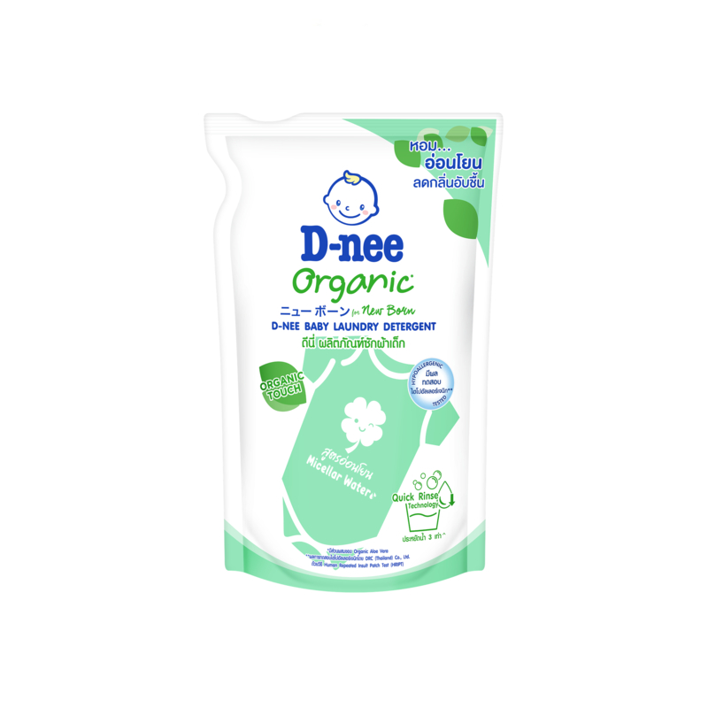 [ยกลัง] D-nee ดีนี่ ผลิตภัณฑ์ซักผ้าเด็ก Organic New Born กลิ่น Organic Aloe Vera 530 มล.x12 , สีเขียว