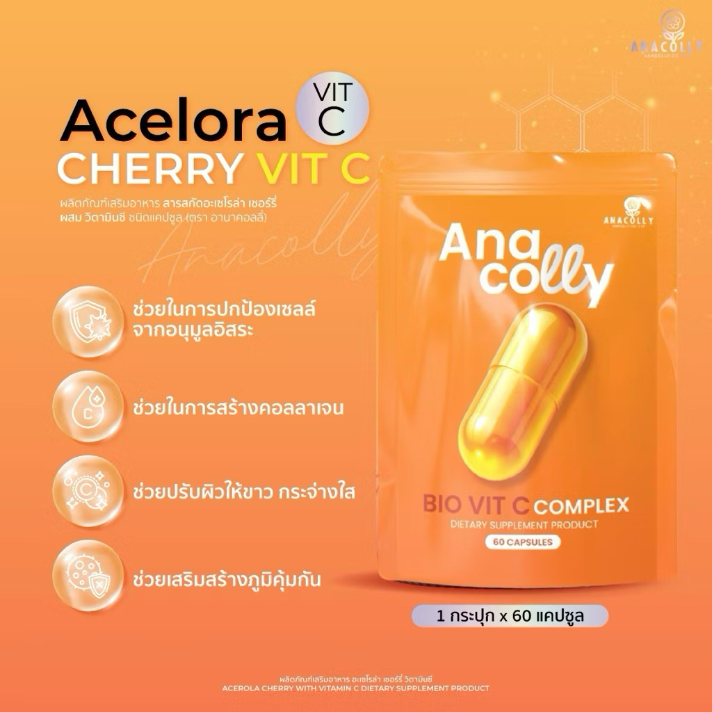 [พร้อมส่ง ส่งฟรี ของแท้‼️]ANACOLLY PLUS อานาคอลลี่พลัส อนาคอลลี่ อะเซโรล่าเชอร์รี่โกลด์ Collagen /Cherry C/ Di-Peptide
