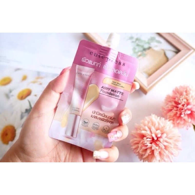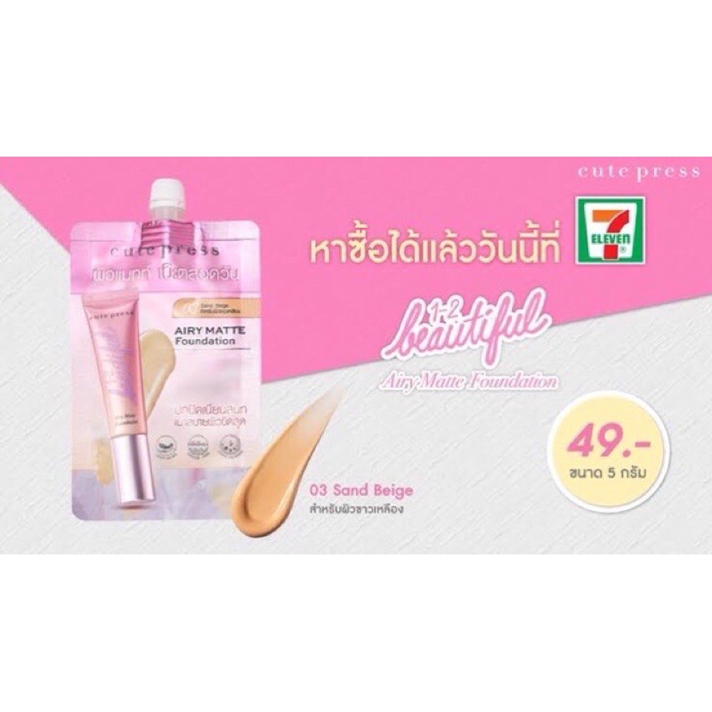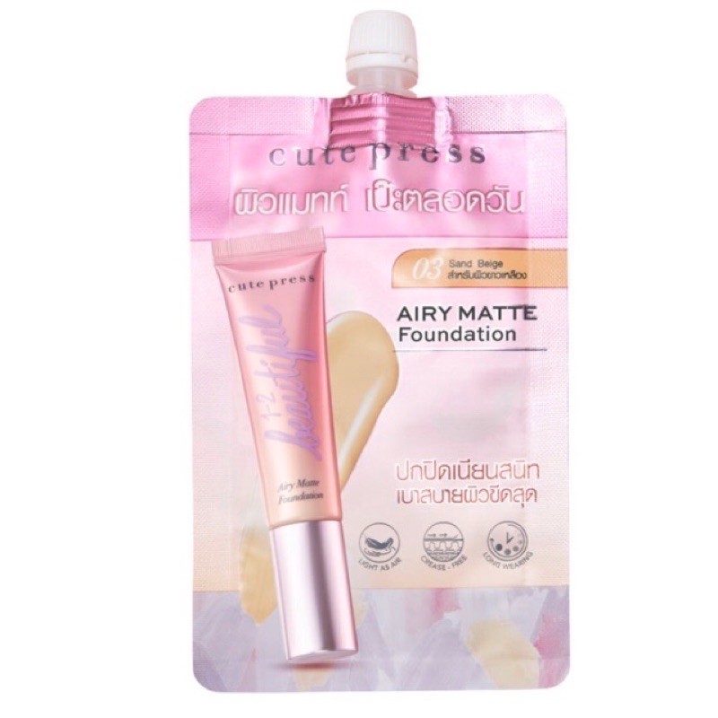 (Set Mini Airy Matte) รองพื้นซองรุ่นใหม่+แป้งผส มรองพื้น CUTE PRESS 1-2 Beautiful Airy Matte Foundation ขนาด 5g