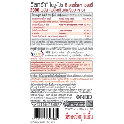 VISTRA Imu-Pro C Acerola Cherry 2000 Plus 30เม็ด [9992] ไอมูโปรซี อะเซโรล่า เชอรี่ 2000 พลัส Imu Pro