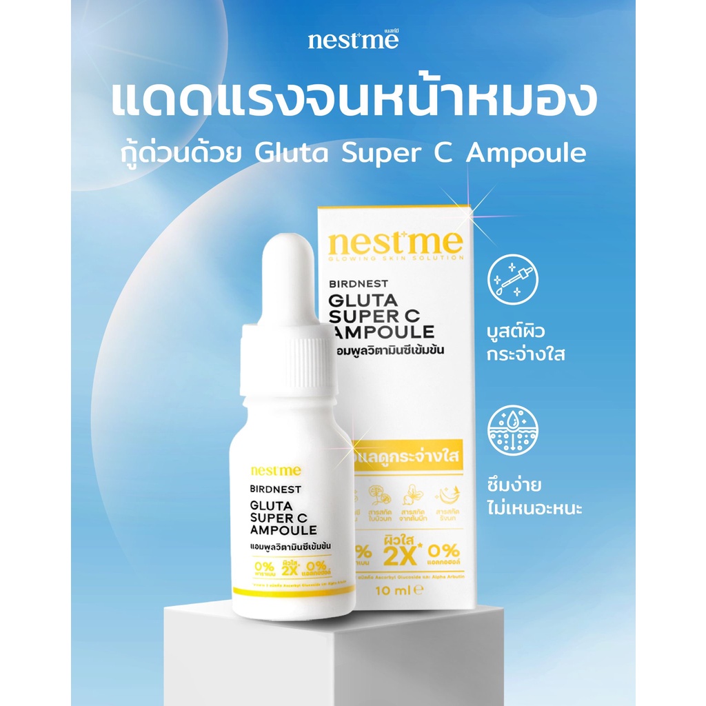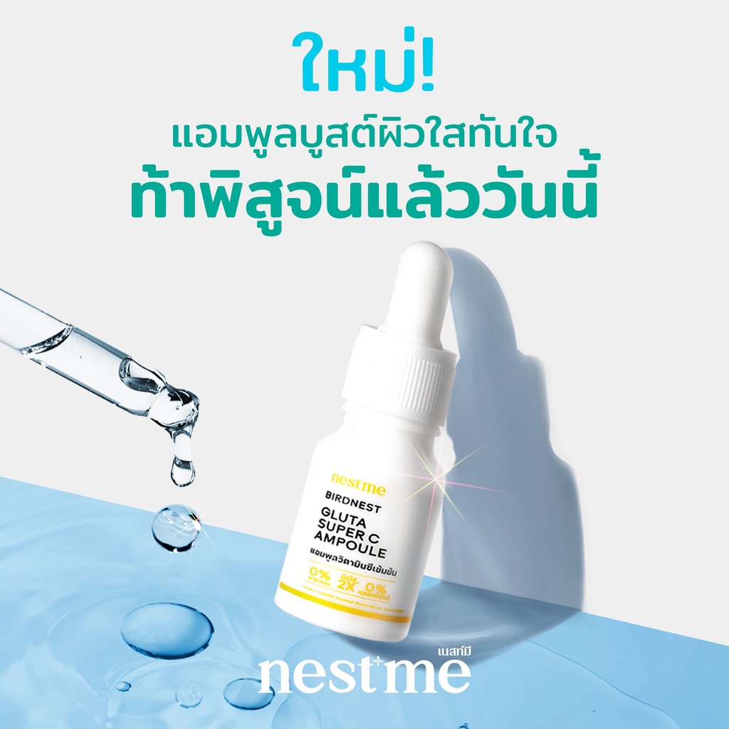 NESTME BIRDNEST GLUTA SUPER C AMPOULE เนสท์มี เบิร์ดเนสท์ กลูต้า ซุปเปอร์ ซี แอมพูล วิตามินซีเข้มข้น 2ขนาด