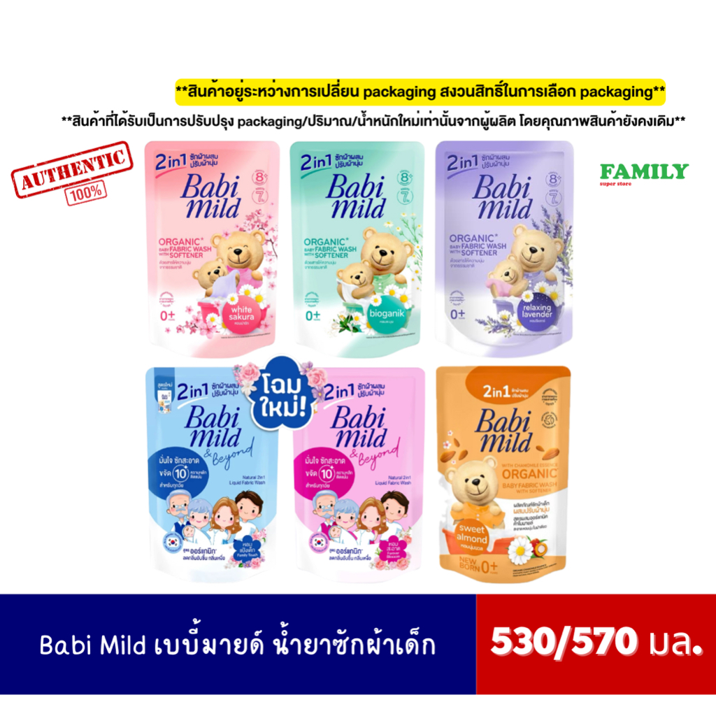 Babi Mild เบบี้มายด์ น้ำยาซักผ้าเด็ก 2in1 530มล./ ปรับ 570มล. สำหรับเด็กแรกเกิด [ราคาถุงเดี่ยว]