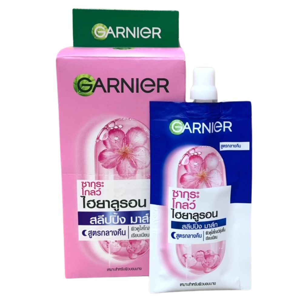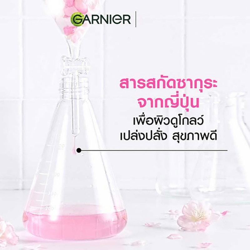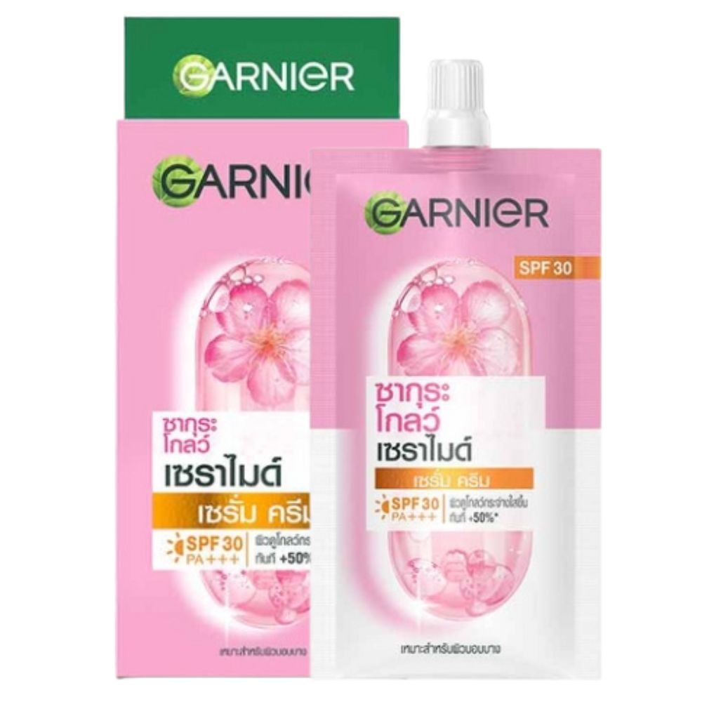 Garnier การ์นิเย่ ซากุระ โกลว์ เซรั่ม ครีม SPF 30 PA+++ / สูตรกลางคืน 1กล่อง (7 มล. x 6 ซอง) ฝาหมุน