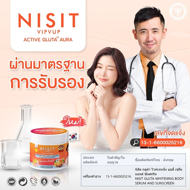 (กระปุก)Nisit Gluta Whitening Body Serum - นิสิตกลูต้าไวท์เทนนิ่ง บอดี้ เซรั่ม ครีมบำรุงผิว(350 g.)