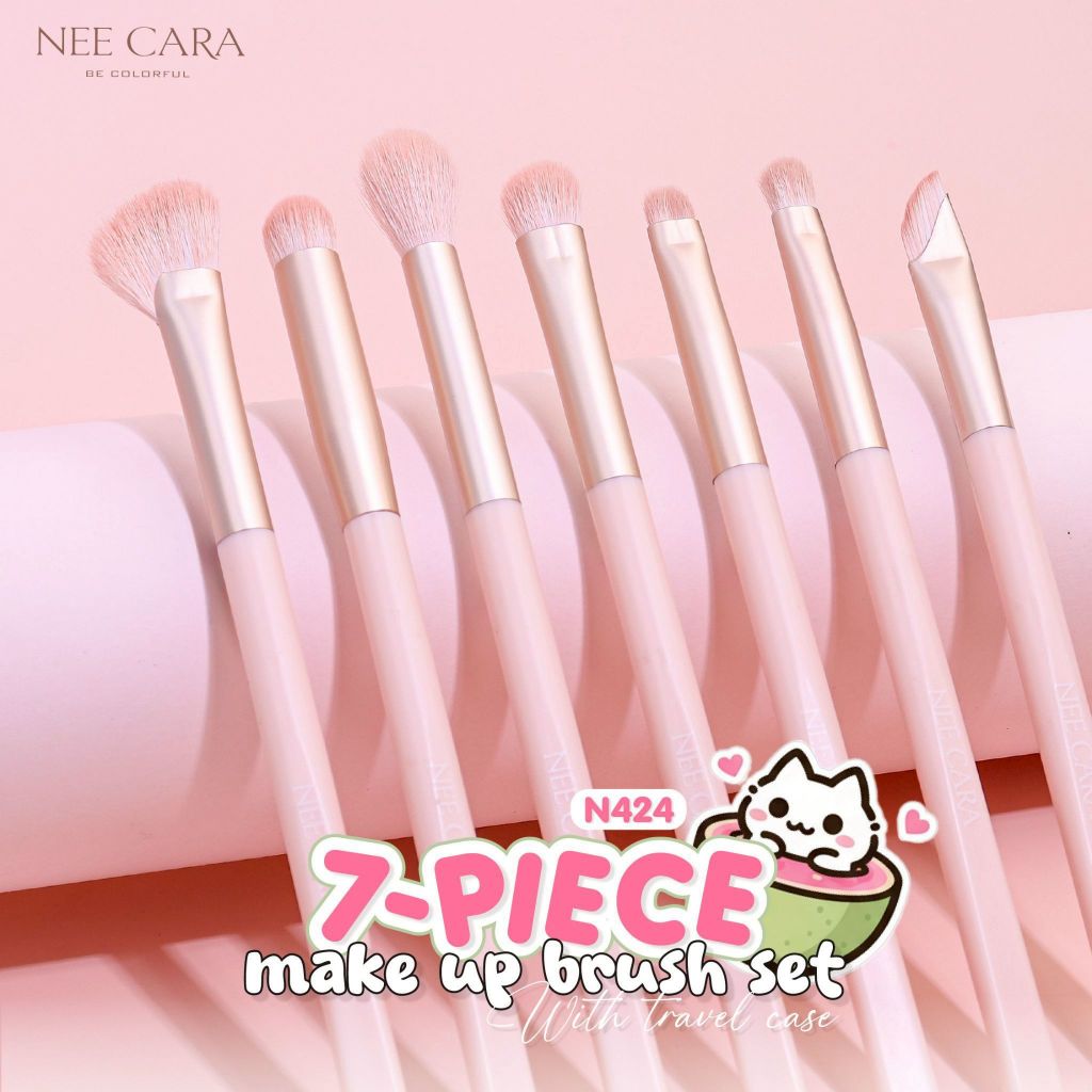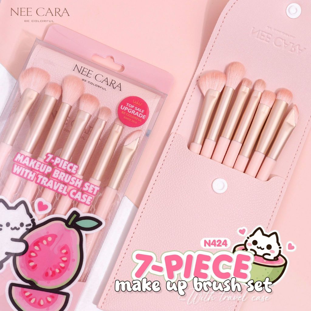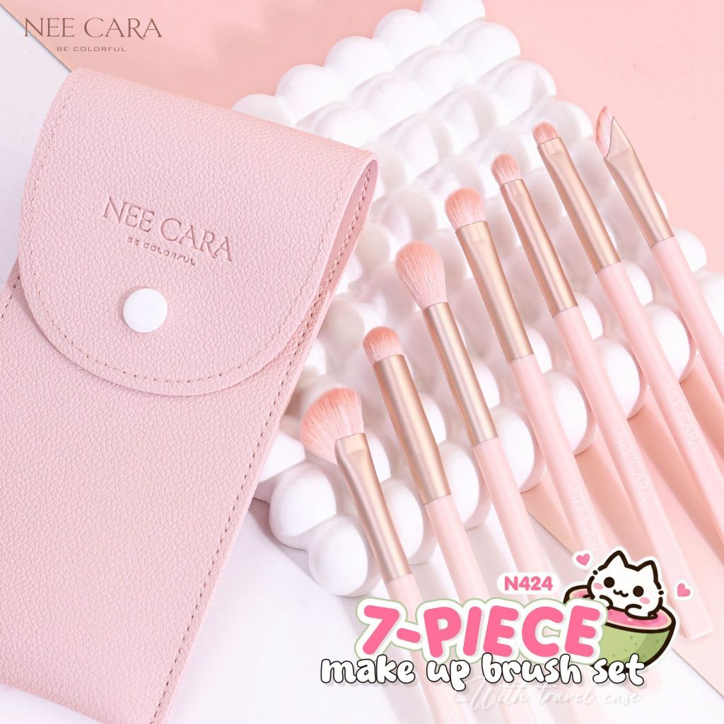ถูก/แท้/มีไลฟ์ เซตแปรง แต่งหน้า Nee Cara 7-Piece Makeup Brush Set แปรงแต่งหน้า ขนแปรงนุ่ม ไม่บาดผิว สีสดใส น่ารัก