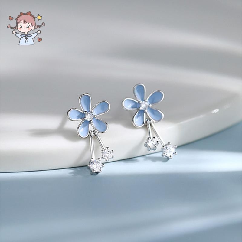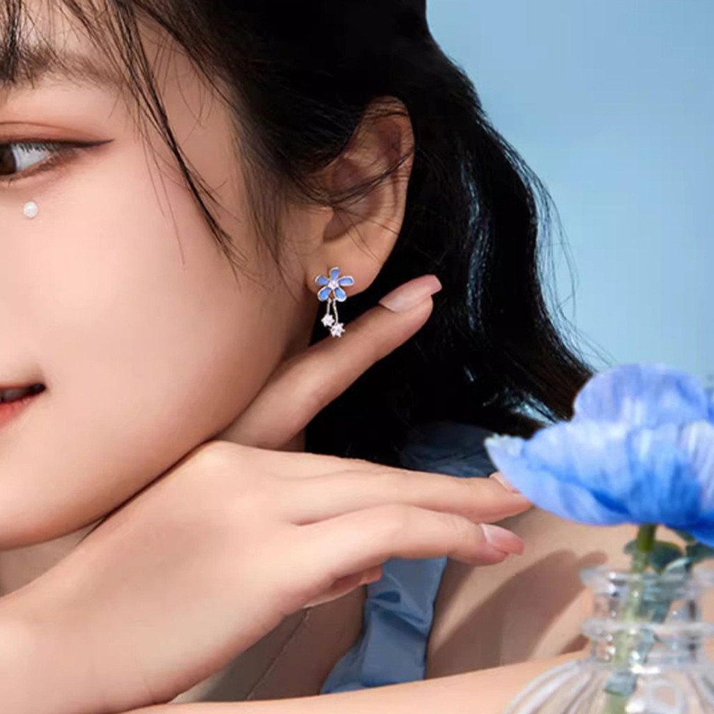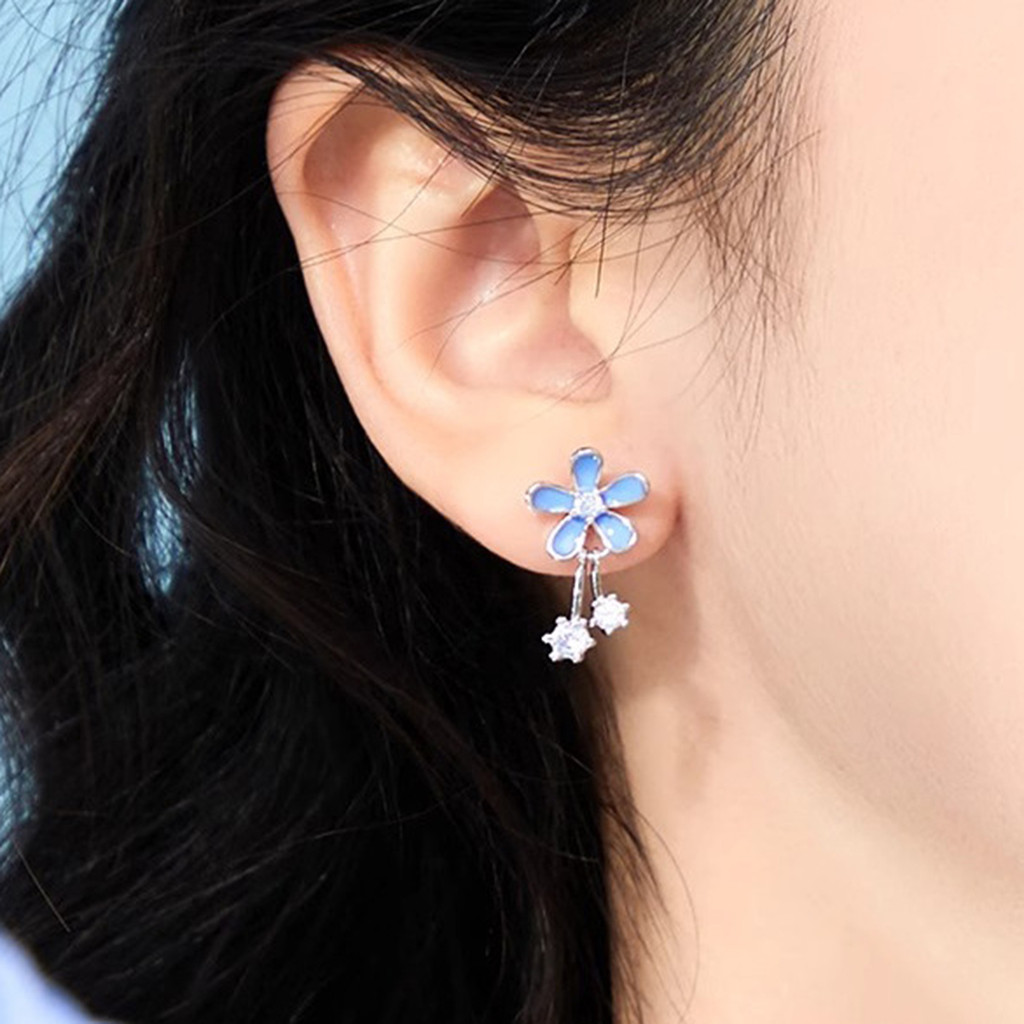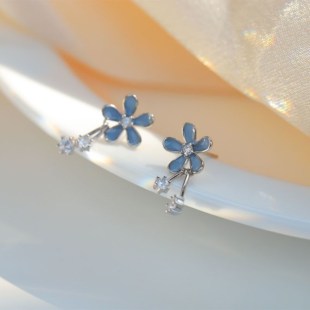 ต่างหูดอกไม้สีฟ้า ออกแบบเรียบง่าย วัสดุโลหะผสม