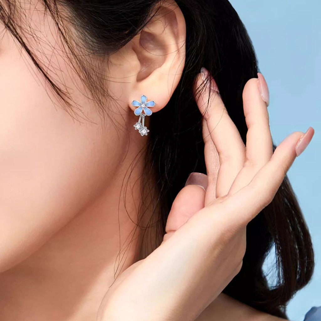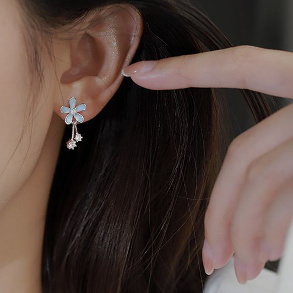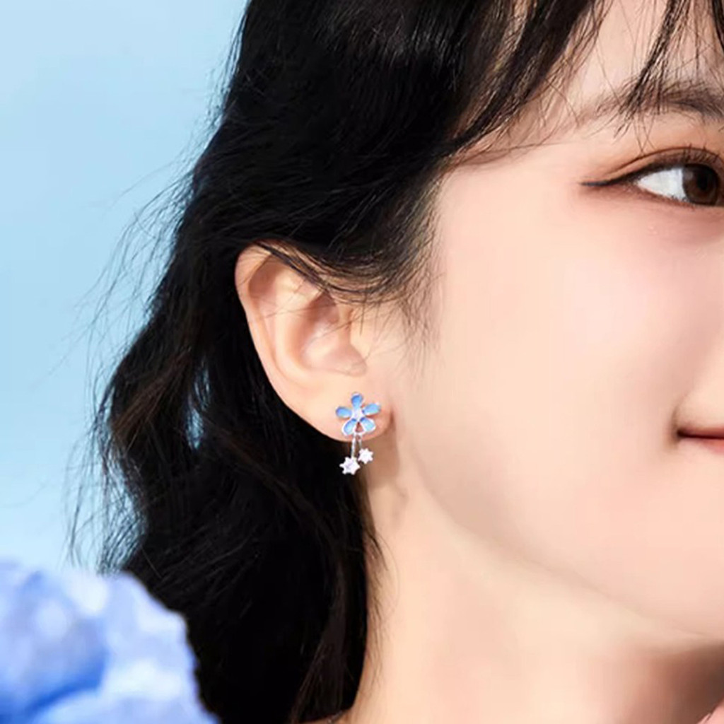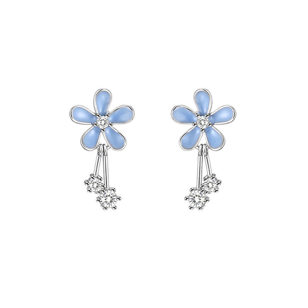 ต่างหูดอกไม้สีฟ้า ออกแบบเรียบง่าย วัสดุโลหะผสม