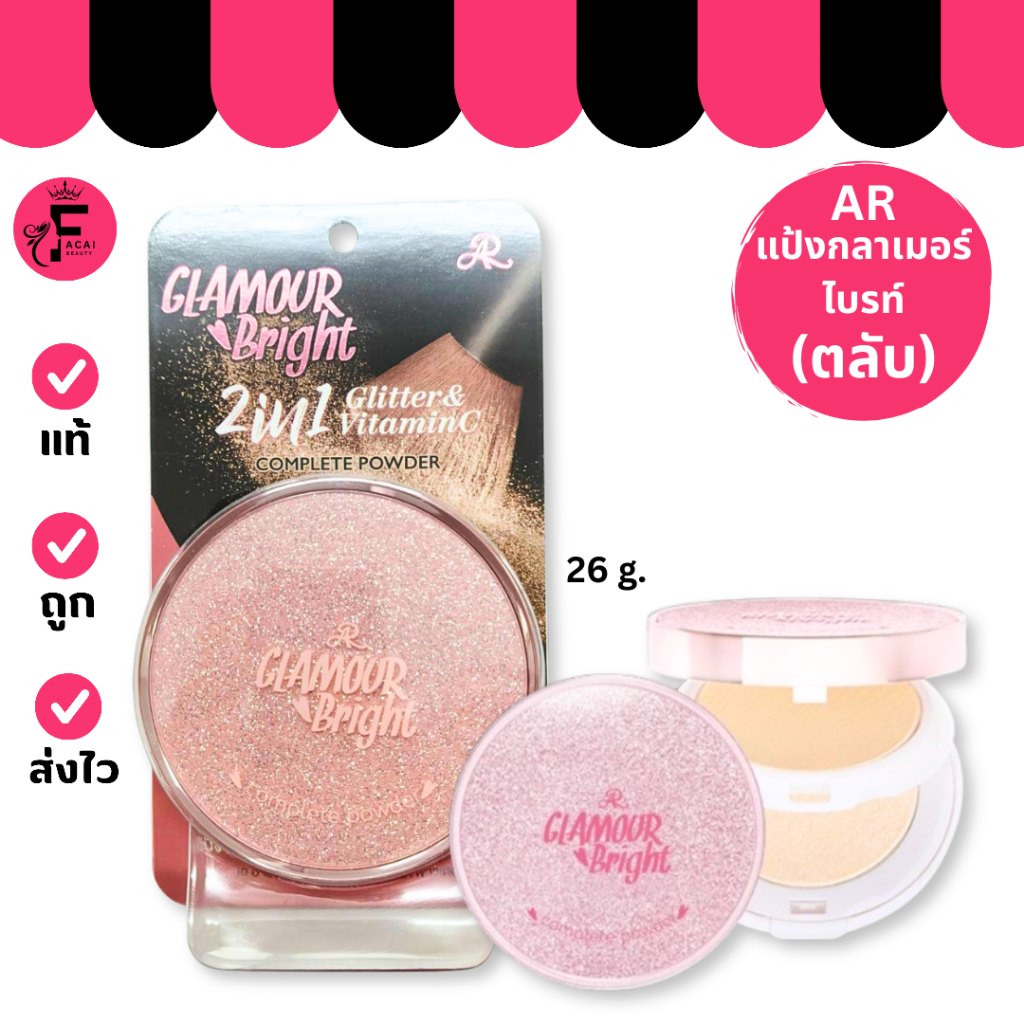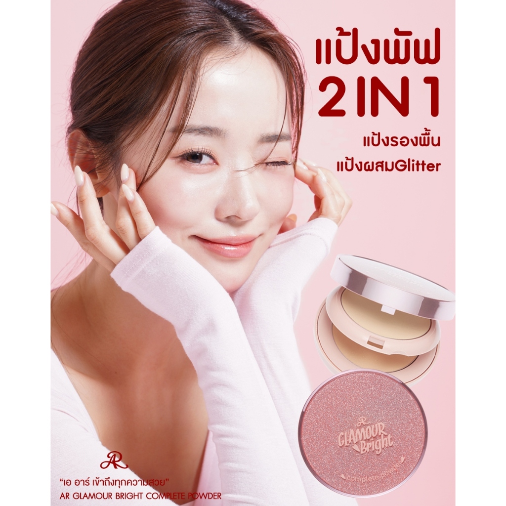 (1 ชิ้น) AR Glamous Bright Complete Powder เออาร์ กลามอร์ ไบรท์ แป้ง 2 ชั้น ผิวใส Wink (26 g.)