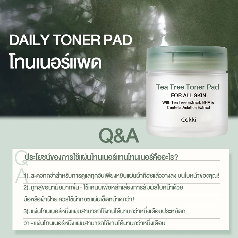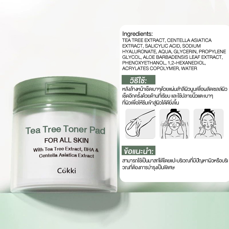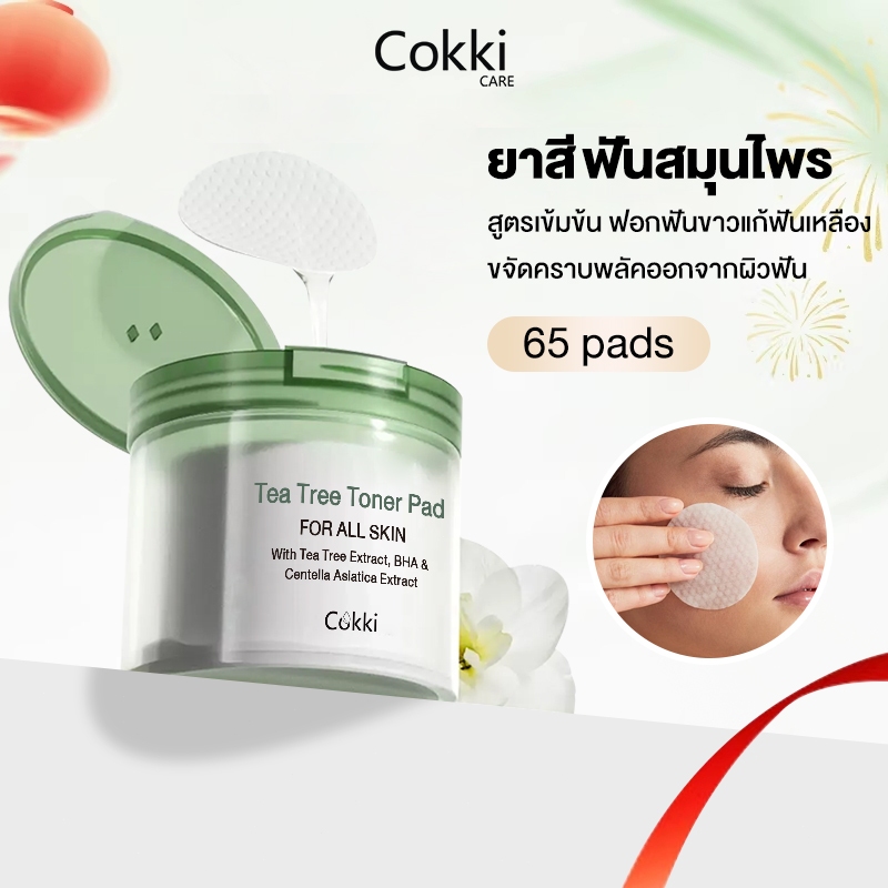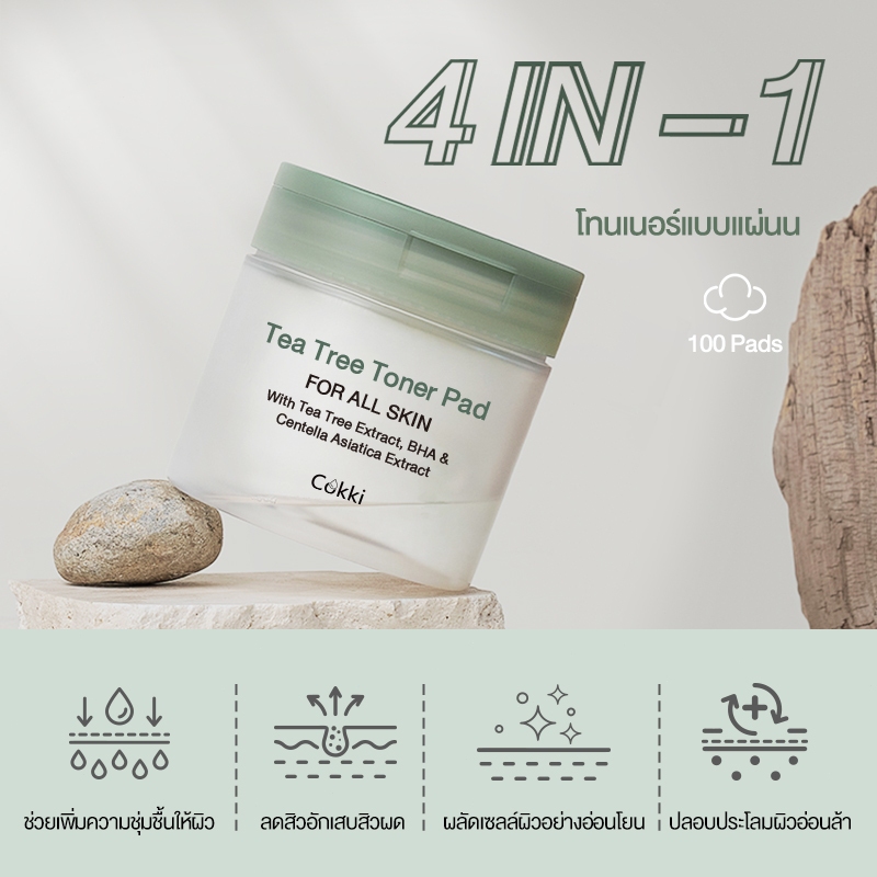 โทนเนอร์แพดลดสิวอุดตัน ขจัดความมัน 65 pads 4IN-1 Cokki Tea Tree Toner Pad