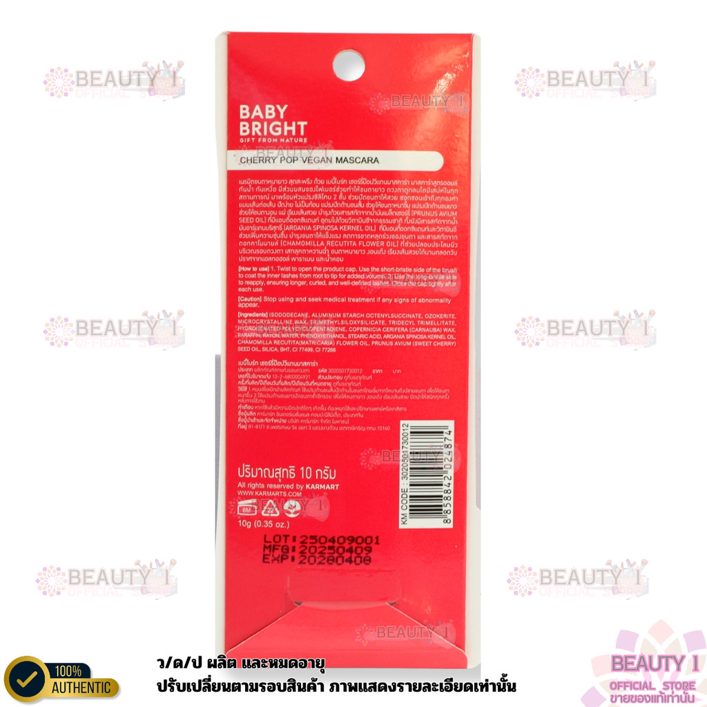 1 แท่ง เชอร์รี่ป๊อป มาสคาร่าสูตรออย กันน้ำ Baby Bright Cherry pop Mascara ปริมาณ 10g.