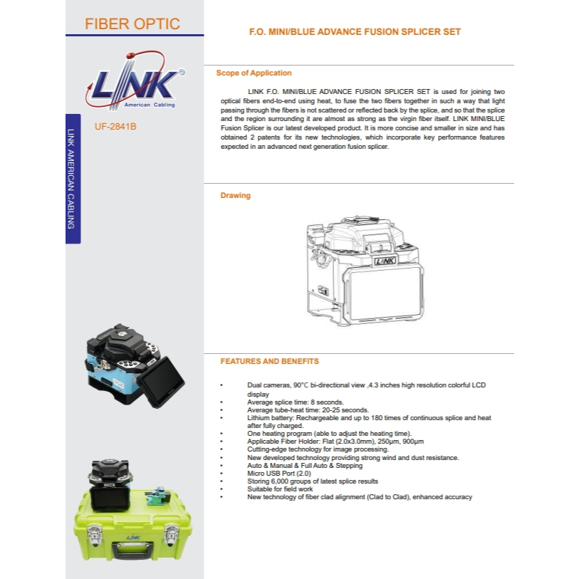 LINK F.O. Mini Advance Fusion Splicer Blue Set รุ่น UF-2841B
