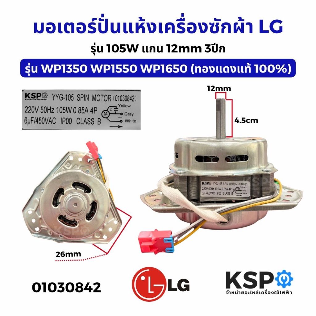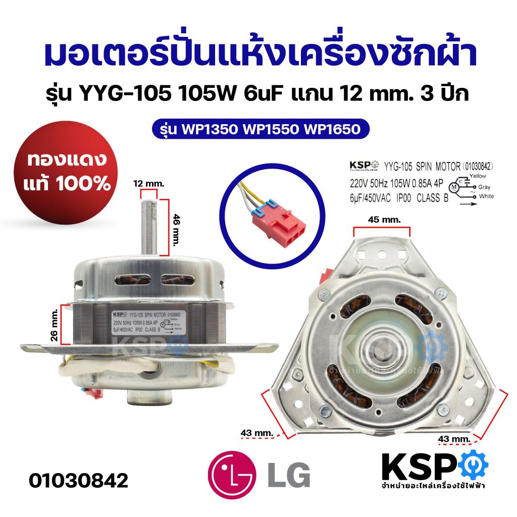 มอเตอร์ปั่นแห้งเครื่องซักผ้า LG แอลจี รุ่น YYG-105 105W 6uF แกน 12mm 3ปีก รุ่น WP1350 WP1550 WP1650 (ทองแดงแท้ 100%) อะไ
