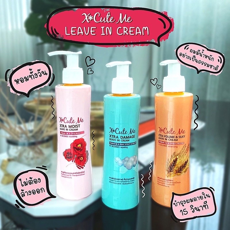 X Cute Me Xtra Leave In Cream เอ็กซ์คิวท์ มี เอ็กซ์ตร้า ลิฟอิน ครีม 220มล บำรุงทำสี แห้งเสีย ชี้ฟู อาหารผม