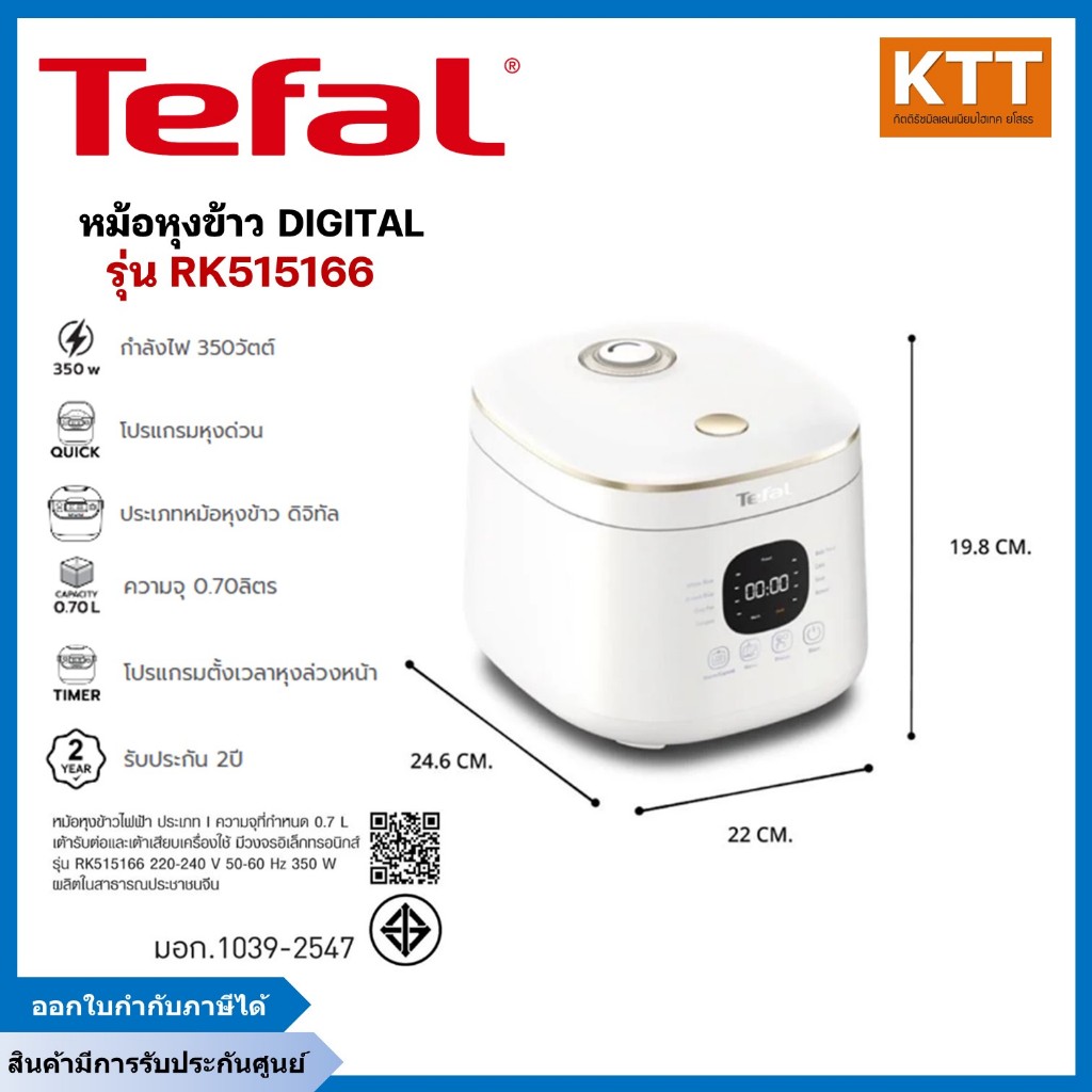 Tefal หม้อหุงข้าวขนาดมินิ RICE MATE ความจุ 0.7 ลิตร รุ่น RK5151