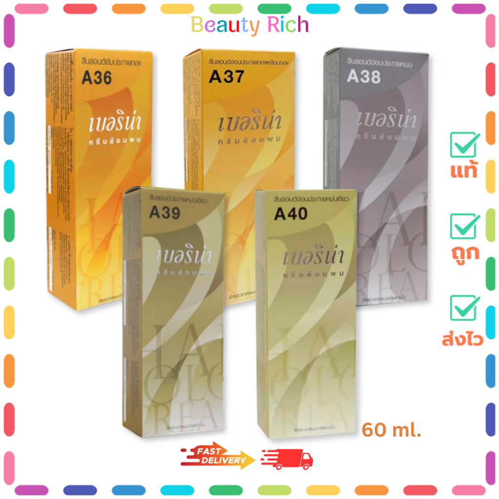 (1 กล่อง) Berina Hair Color Cream เบอริน่า ครีมย้อมผม มี 5 เฉดสี เบอร์ 36-40 (60 ml.)
