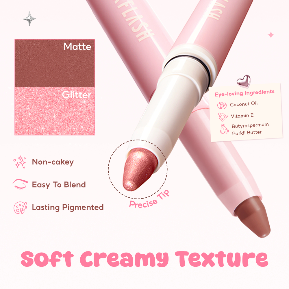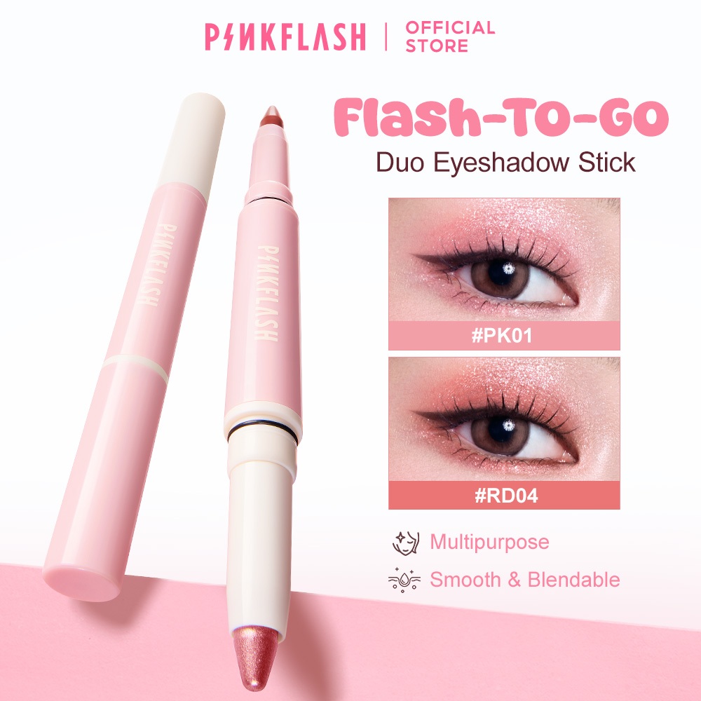 PINKFLASH Flash-To-Go Duo Eyeshadow Stick Matte&Shimmer เม็ดสีสูง Smooth อเนกประสงค์กันน้ํา
