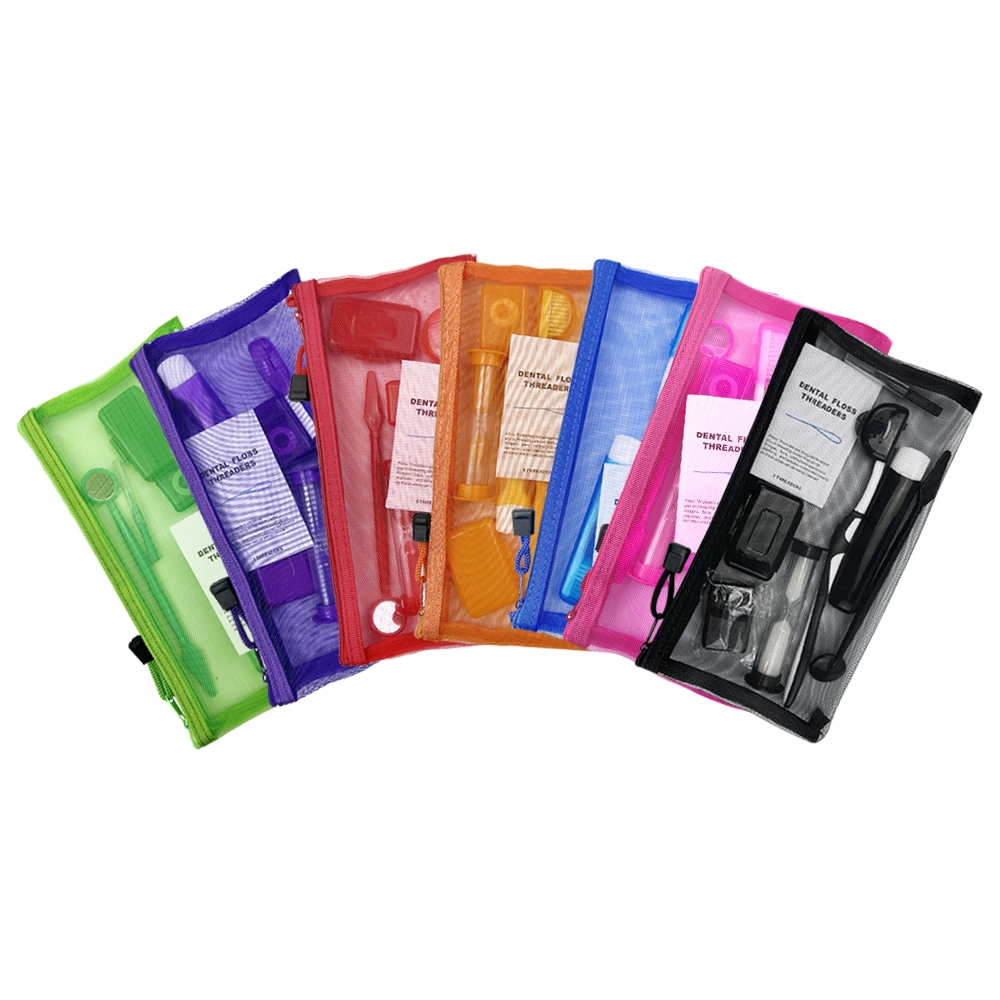 8 ชิ้น/เซ็ต Travel จัดฟัน Oral Care Kit แปรงสีฟันพับได้ Interdental แปรงทันตกรรมปากกระจกไหมขัดฟัน Ortho Wax ชุดทําความสะอาดฟัน