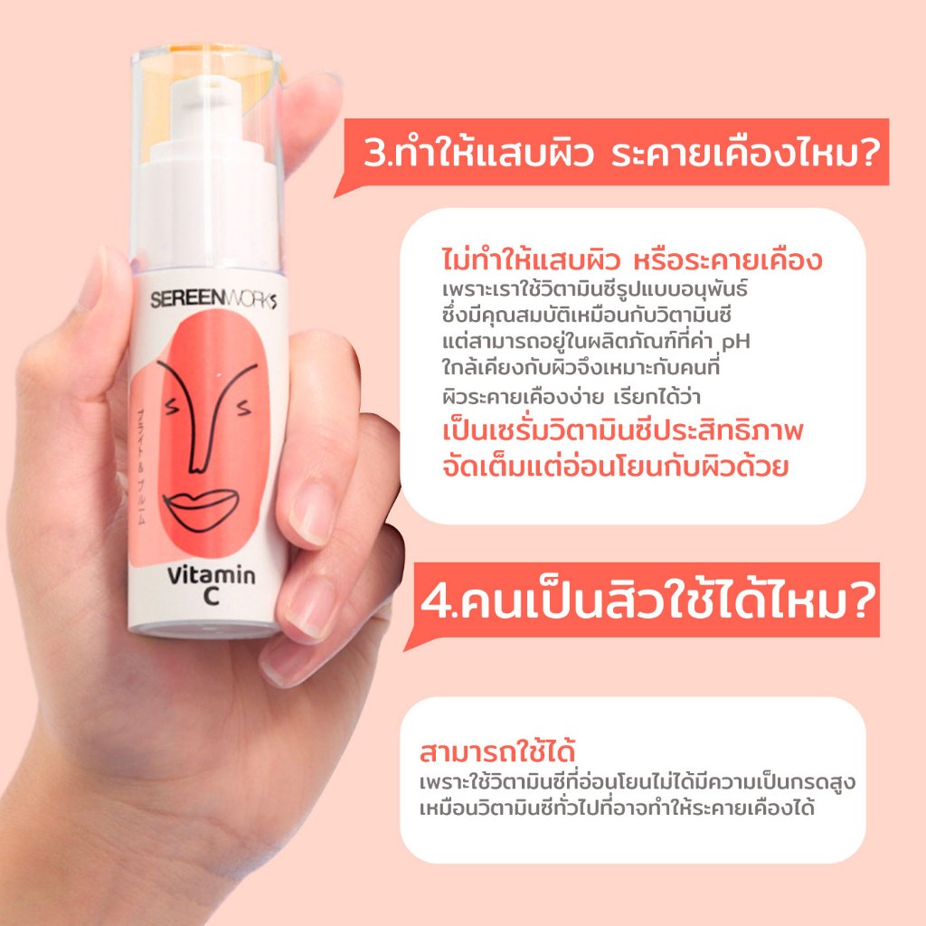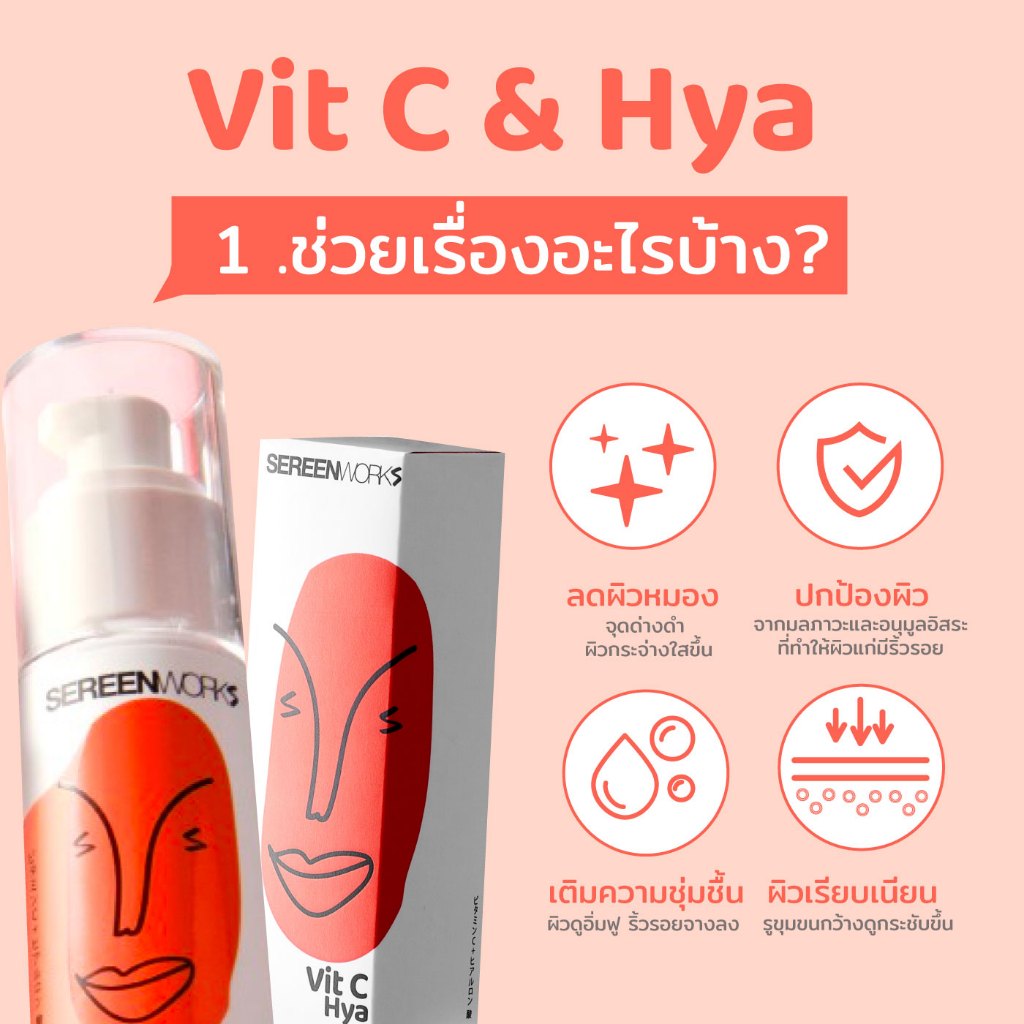 SEREENWORKS Vit C & Hya Face Serum 30ml. เซรั่มวิตซี ลดความหมองคล้ำ ปรับผิวกระจ่างใส