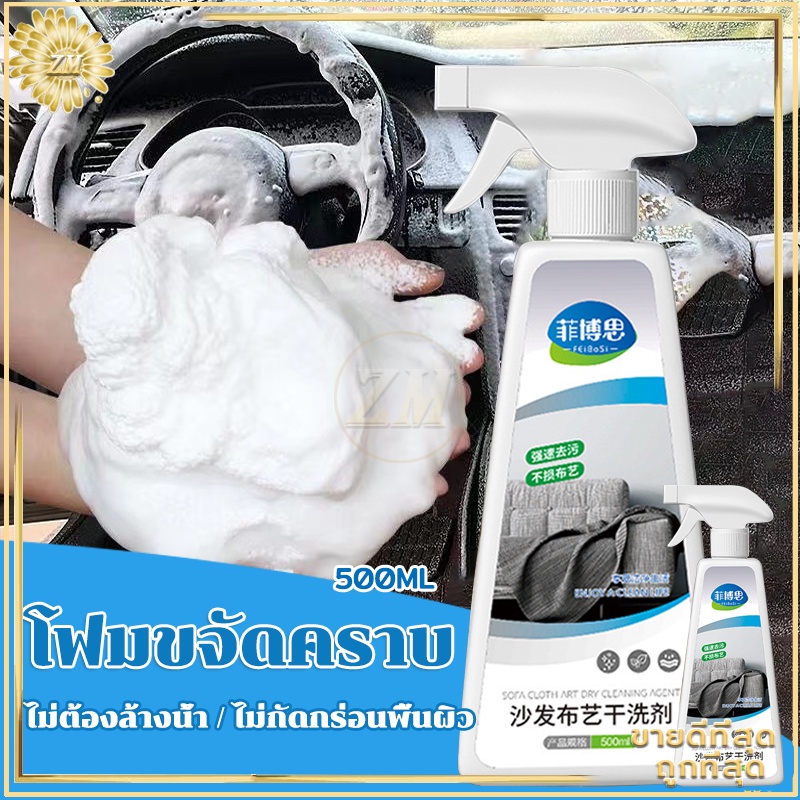 โฟมทําความสะอาดเบาะรถยนต์ น้ำยาทำความสะอาดโซฟาผ้า500MLสเปรย์ซักแห้ง ไม่ต้องล้างน้ำ แค่ฉีดแล้วถู ก็ทำความสะอาดได้