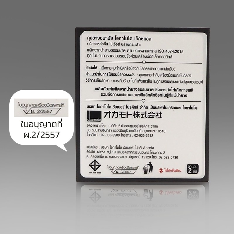 Okamoto XL ถุงยางอนามัย ใหญ่พิเศษ บางที่สุด ผิวเรียบ ขนาด 54 มม. บรรจุ 1 กล่อง (2 ชิ้น)