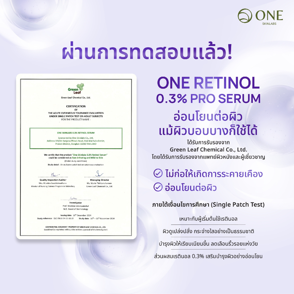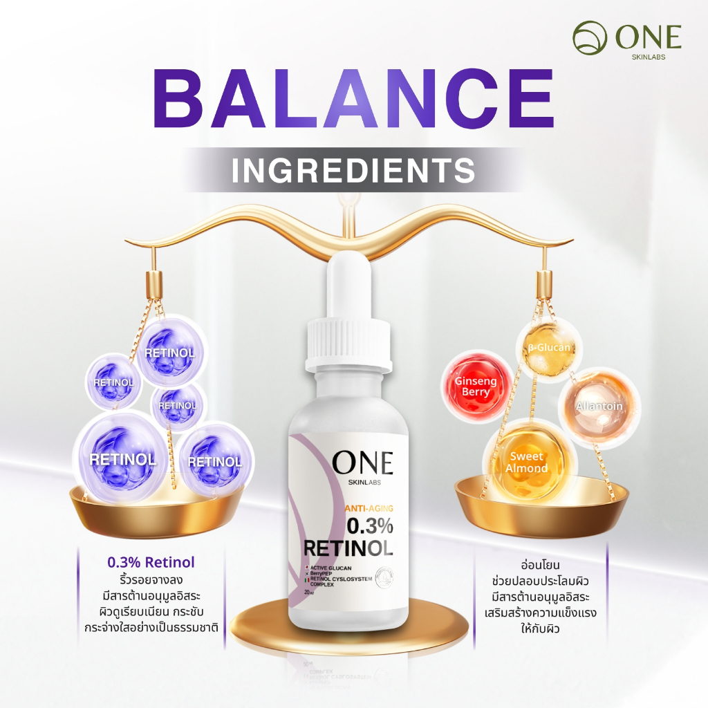 ONE SkinLabs Retinol 0.3 Pro Serum สกัดจากเห็ด HANABIRATAKE จากญี่ปุ่น ช่วยฟื้นฟูผิวให้กระชับ เนียนใส