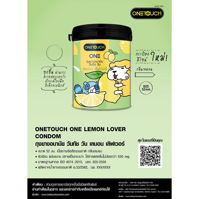 Onetouch Lemon Lover 12 ชิ้น 52mm ถุงยางอนามัยกลิ่นหวาน เลมอน วันทัช