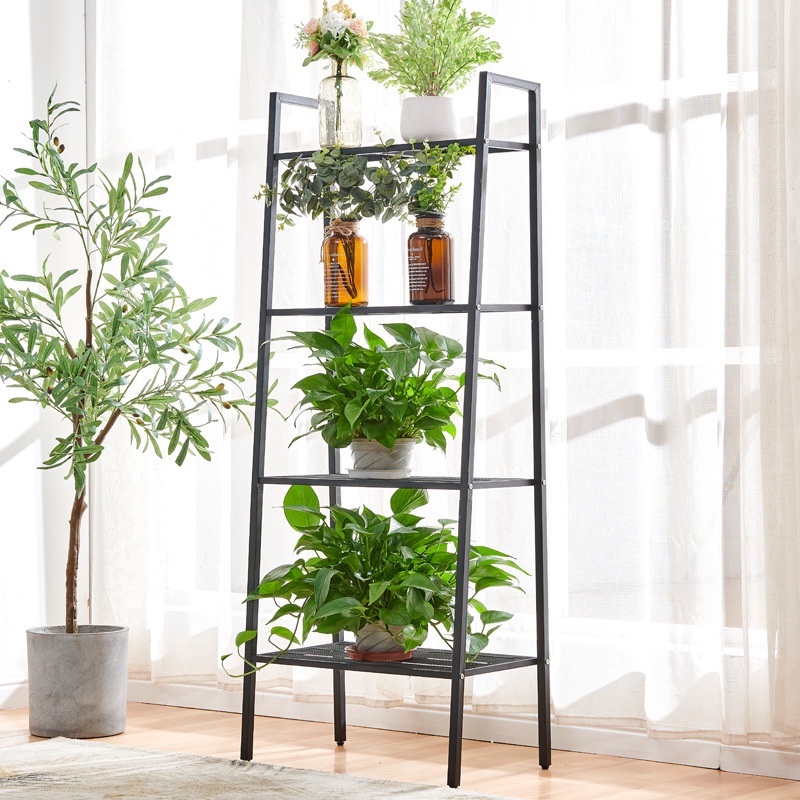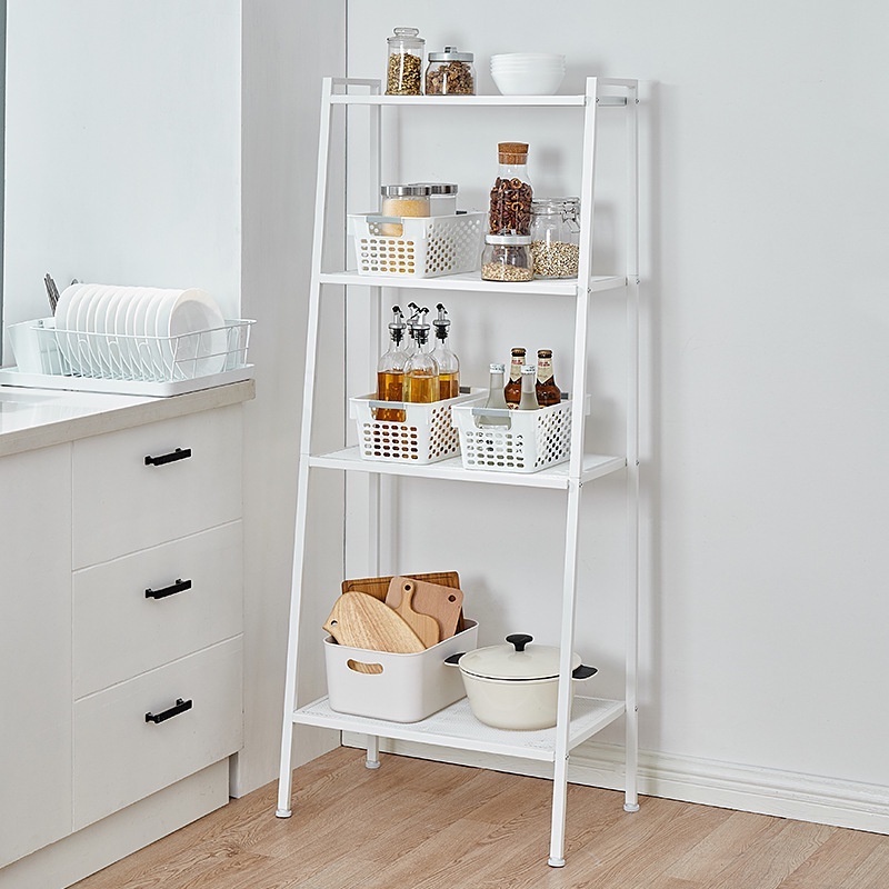 Oneworldshop ชั้นวางของสแตนเลส เคลือบเซรามิก ชั้นอเนกประสงค์ 4 ชั้น ทรงสี่เหลี่ยมคางหมูรับน้ำหนักได้ 150 kg CB-404