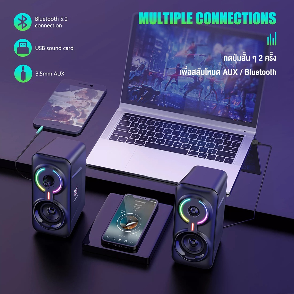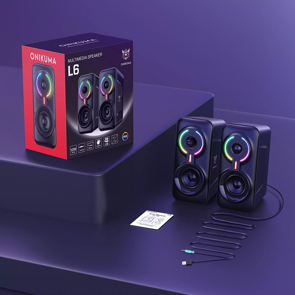 Onikuma L6 Multimedia Speaker ลำโพงคอมพิวเตอร์ รองรับ AUX / Bluetooth มีไฟ RGB ใช้งานกับ Computer / Smartphone