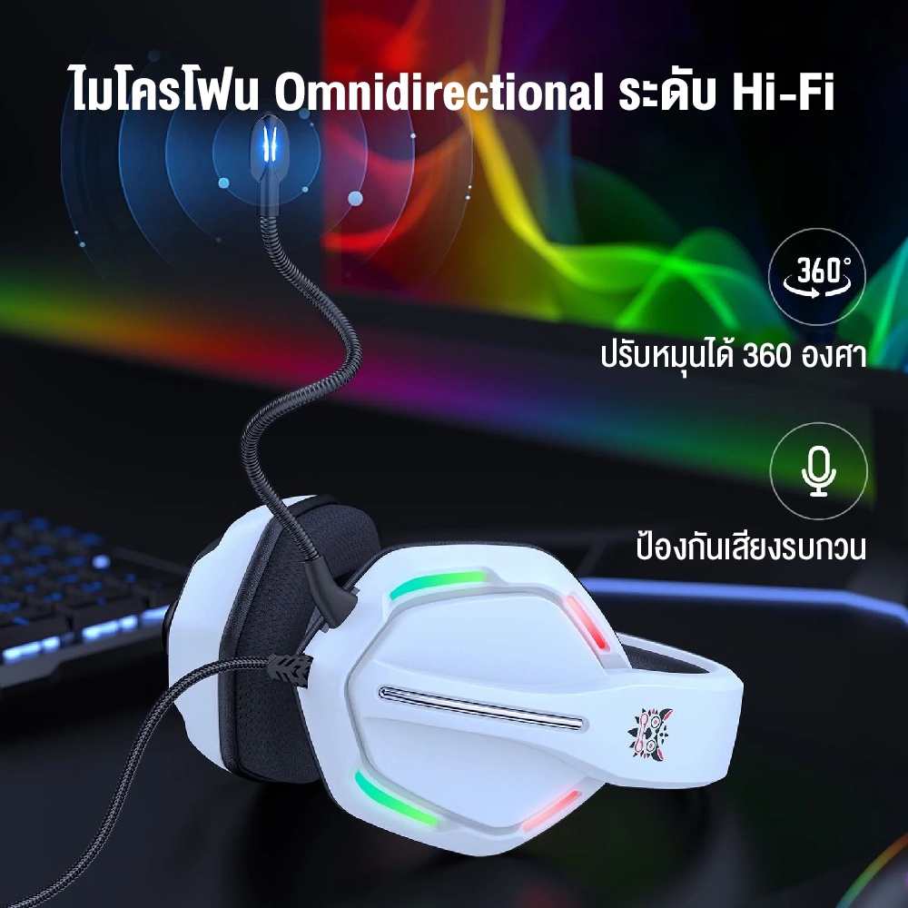 Onikuma X27 Gaming Headset หูฟังเกมมิ่ง 3.5 มม. ไดร์เวอร์ขนาด 50 มม. มีไฟ RGB ตัดเสียงรบกวนได้ดี