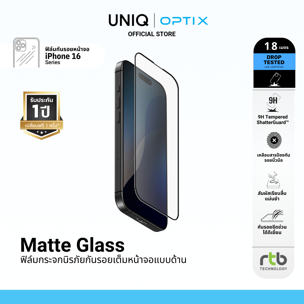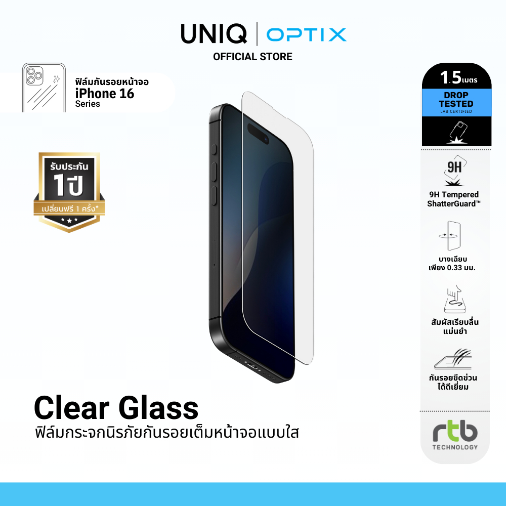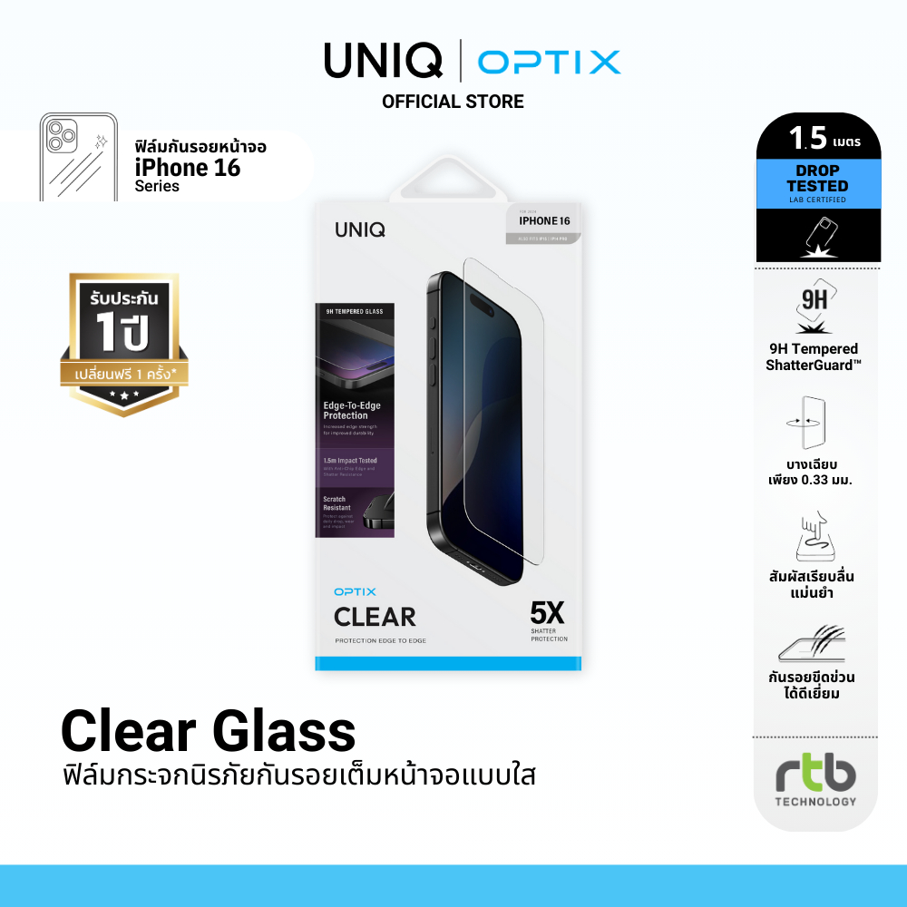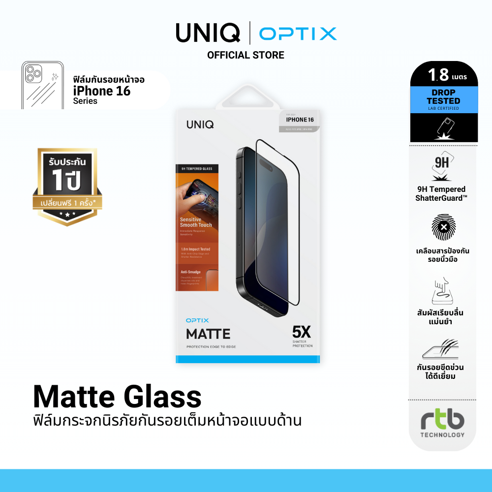 Optix ฟิล์มกระจกกันรอยเต็มหน้าจอ สำหรับ iPhone 16/16 Plus/16 Pro/16 Pro Max