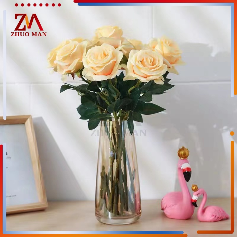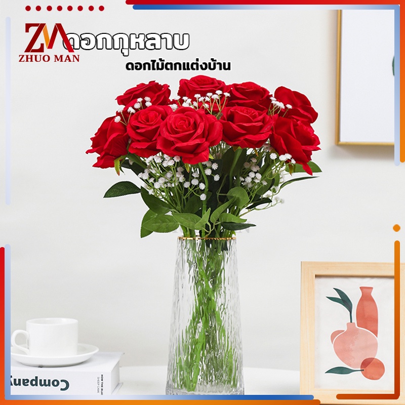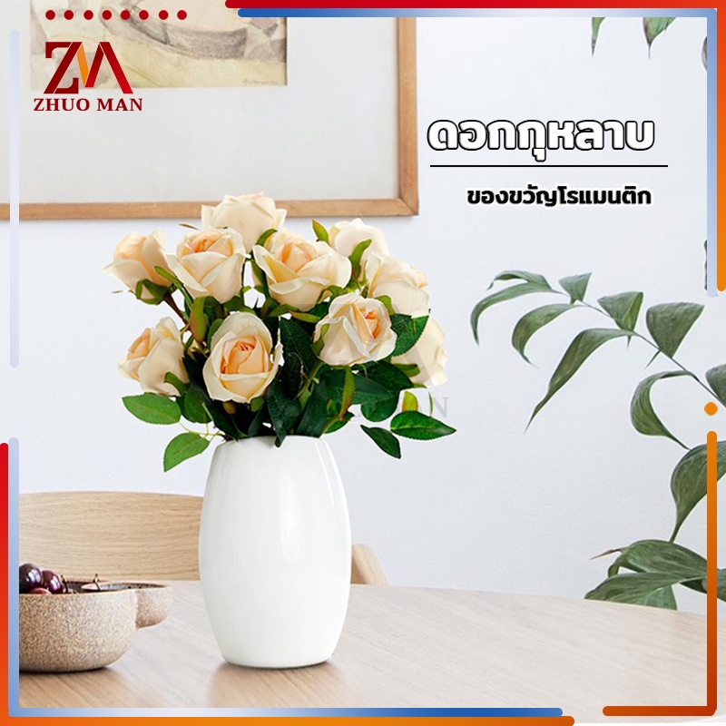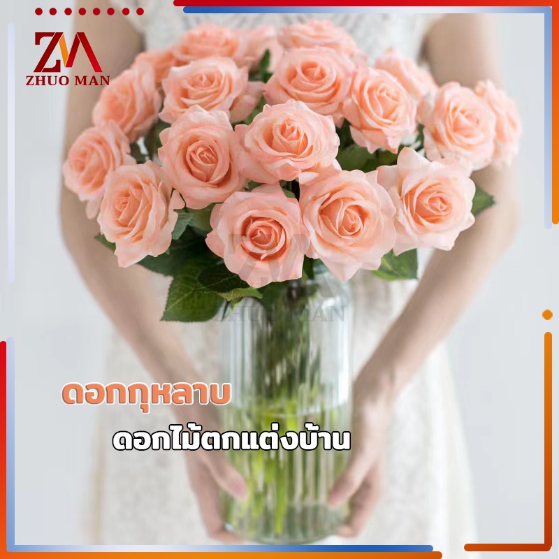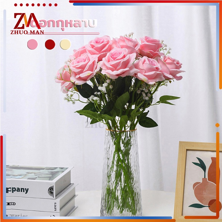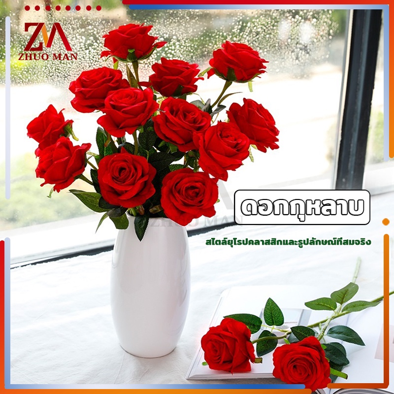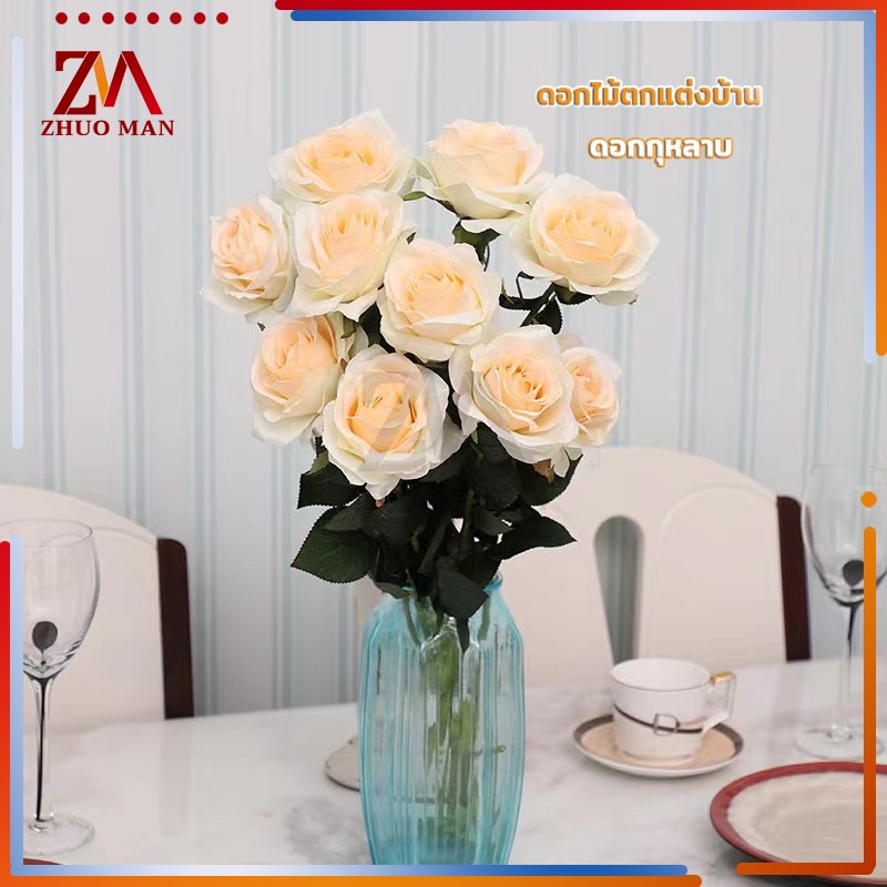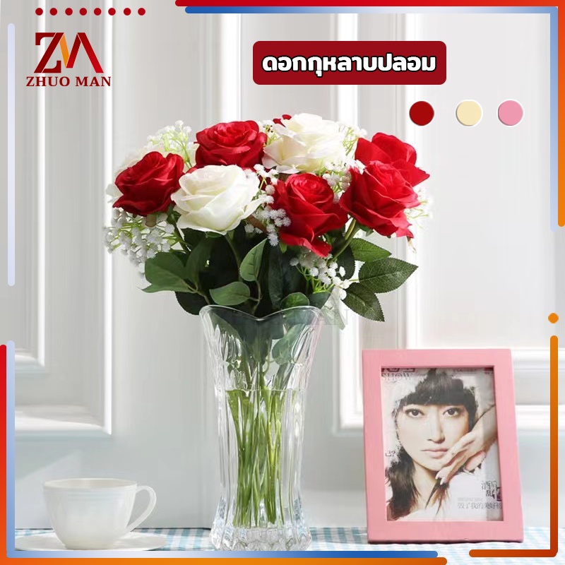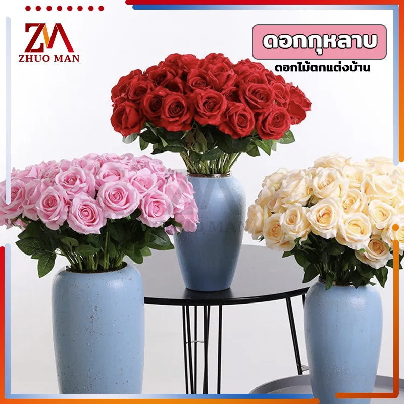 ดอกไม้กุหลาบปลอมประดิษฐ์ ตกแต่งบ้าน วัสดุผ้าไหมเทียม คุณภาพดี สวยงาม สีสันสดใส มีให้เลือก 3 สี