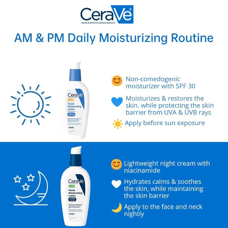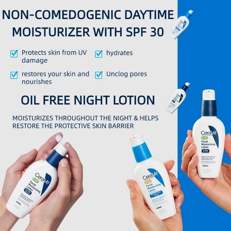 CeraVe AM/PM Facial Moisturizing Lotion SPF30 Oil-Free Sunscreen Face Moisturizer Lotion 89ml