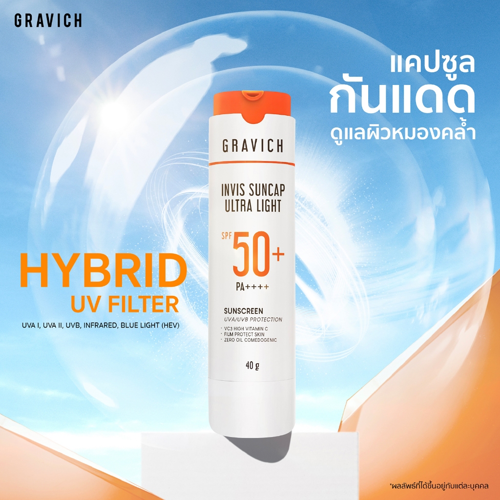 กราวิช นวัตกรรมกันแดดแคปซูล Gravich Invis Suncap Ultra Light Sunscreen SPF50+ PA++++ 40 g.