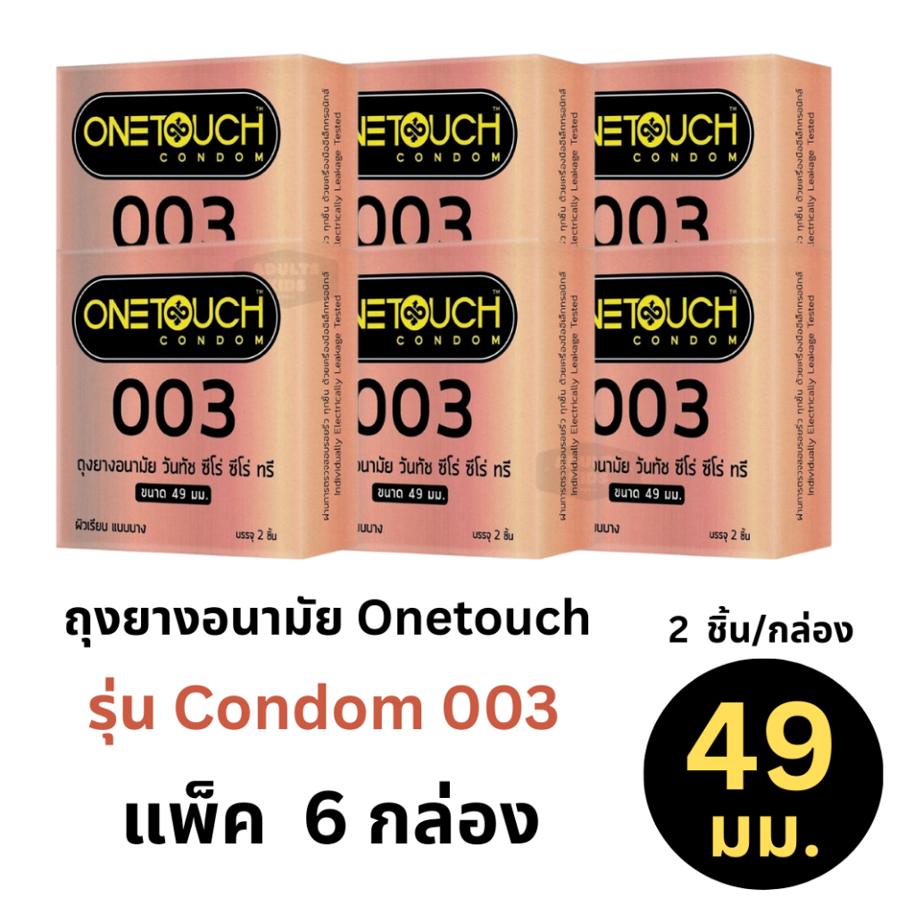 ลดเพิ่ม 30% 🔥 ถุงยางอนามัย OneTouch วันทัช 003 ขนาด 49 มม. จำนวน 6กล่อง บรรจุ 2ชิ้น/กล่อง