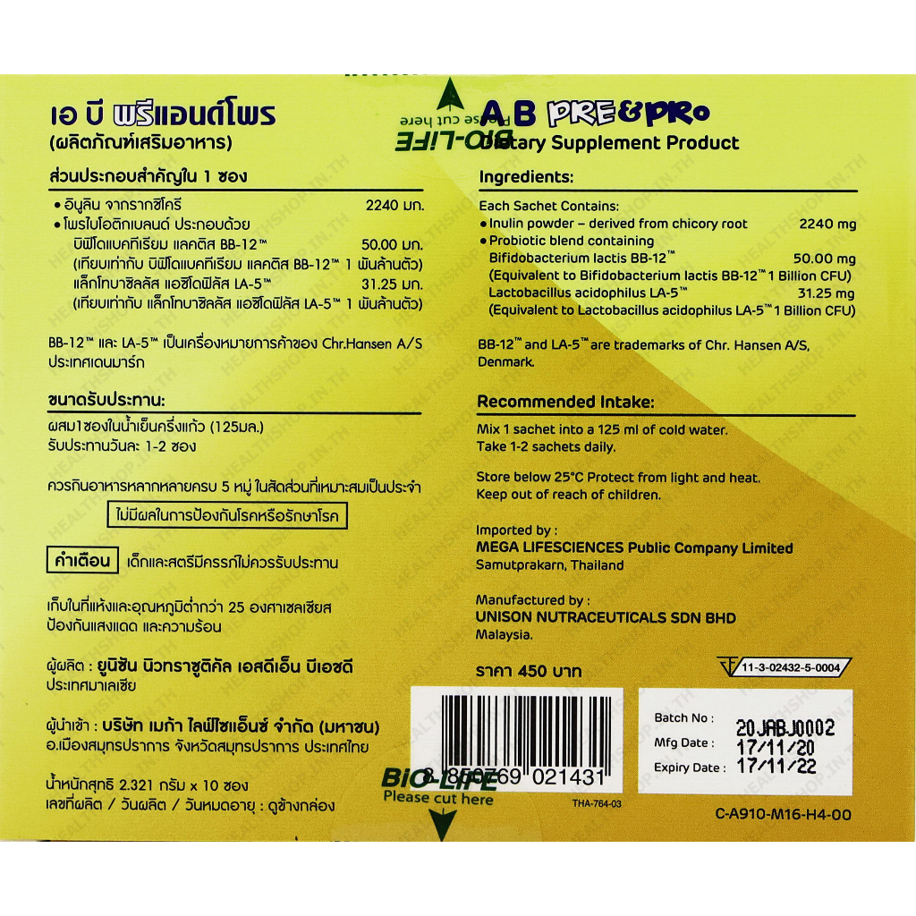 Mega We Care AB Pre&Pro เมก้า วีแคร์ เอ บี พรีแอนด์โพร [10 ซอง] 39026 EXP:09/2024