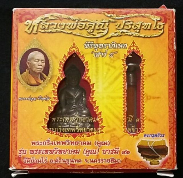 พระเครื่องพระกริ่ง_เทพวิทยาคม (หลวงพ่อคูณ) บารมี91 รุ่นเทพวิทยาคม พร้อมตะกรุดจีวร #ปี2557 กล่องเดิม พระแท้100% มือ1